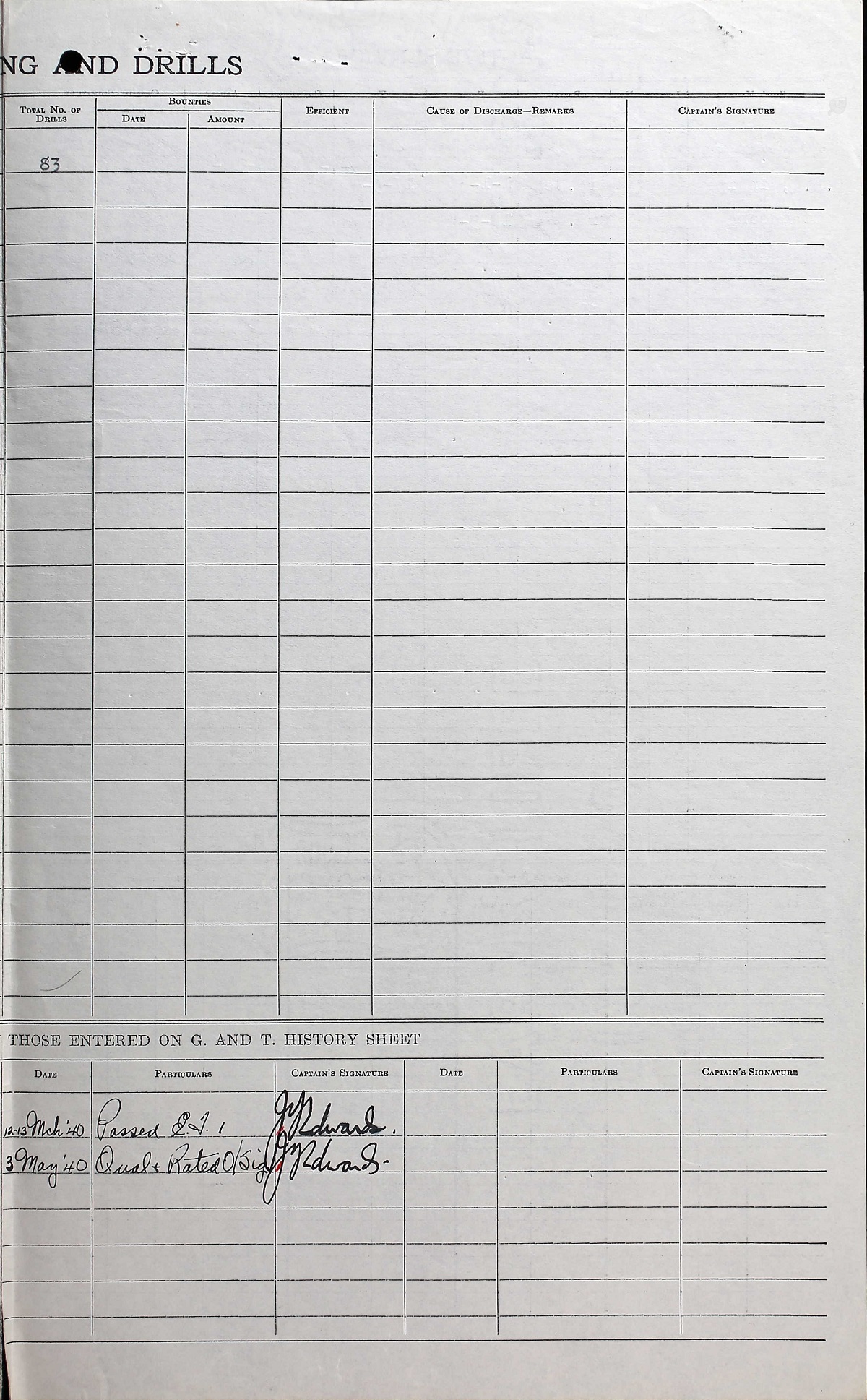 Ships served in: WINNIPEG DIVISION RCNVR - Enlisted - peacetime service - 03 May 1939 as an OS, RCNVR WINNIPEG DIVISION RCNVR - Commenced Active Service 18 Dec 1939 as an OS, RCNVR. Rated O/Sig 03 May 1940 HMCS STADACONA - Drafted to STADACONA 18 May 1940 as an O/Sig, RCNVR HMCS OTTER - Drafted to OTTER 04 Oct 1940 as an O/Sig, RCNVR