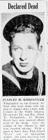 (SMK001) Telegraphist Stanley Kirkpatrick Missing on Alberni // The Saint John Times Globe // Courtesy of Operation Picture Me (SMK002) Telegraphist Stanley Kirkpatrick Declared Dead // The Saint John Times Globe // Courtesy of Operation Picture Me (SMK003) Service file for Stanley Kirkpatrick // Source: The Library and Archives of Canada