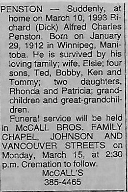 Died: 10 Mar 1993, Victoria, British Columbia