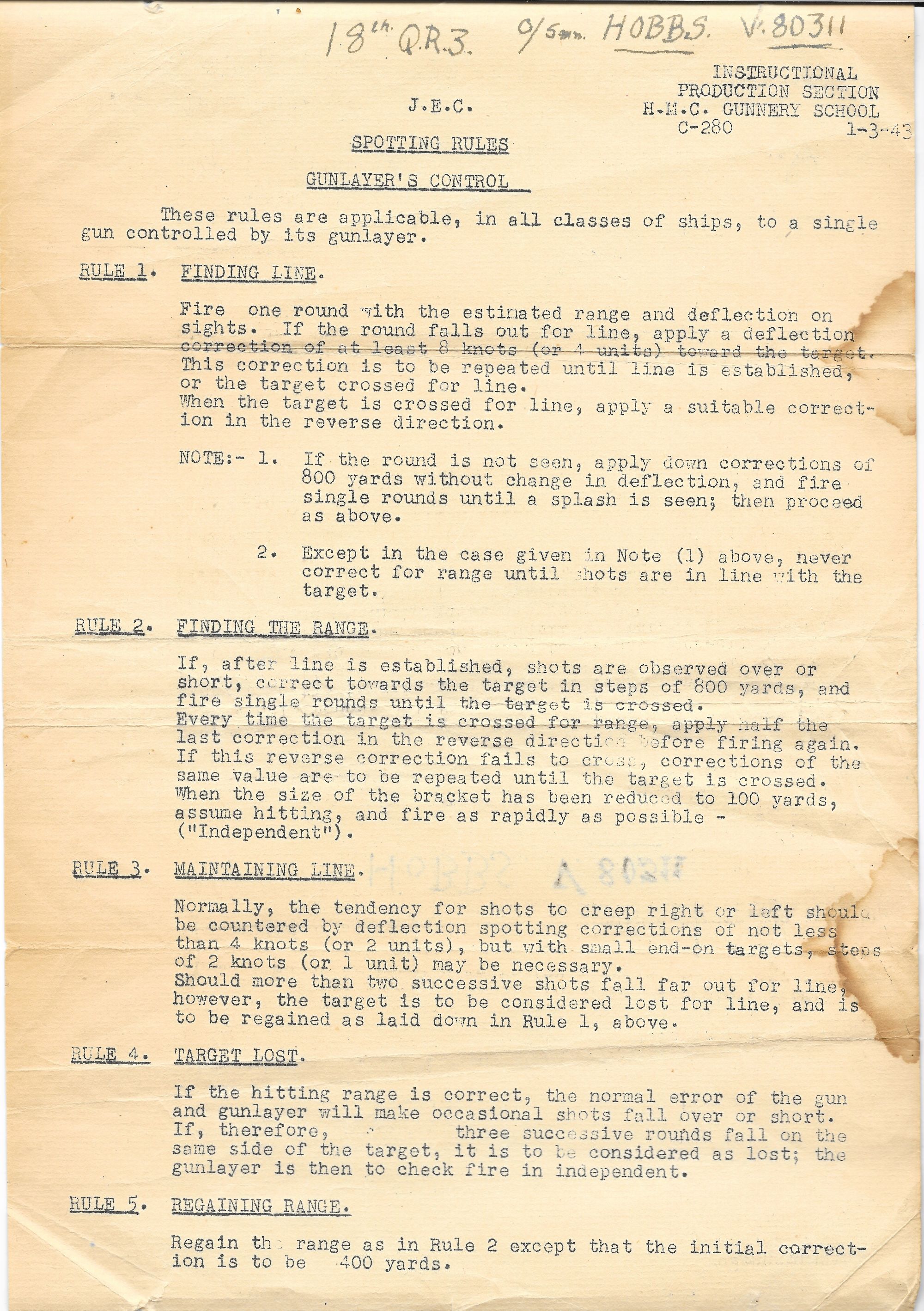 (...) HMCS CORNWALLIS Postcard - Marching to daily divisions (...) Spotting Rules - Gun Layer's control, HMC GUNNERY SCHOOL 01 Mar 1943