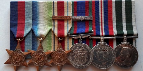 Awards and decorations: 1939-45 Star, Atlantic Star, Africa Star with North Africa Clasp, Canadian Volunteer Service Medal with Clasp, War Medal 1939-1945, Long Service and Good Conduct Medal (RCNR). Note: Only 54 R.C.N.R. long service medals were issued.