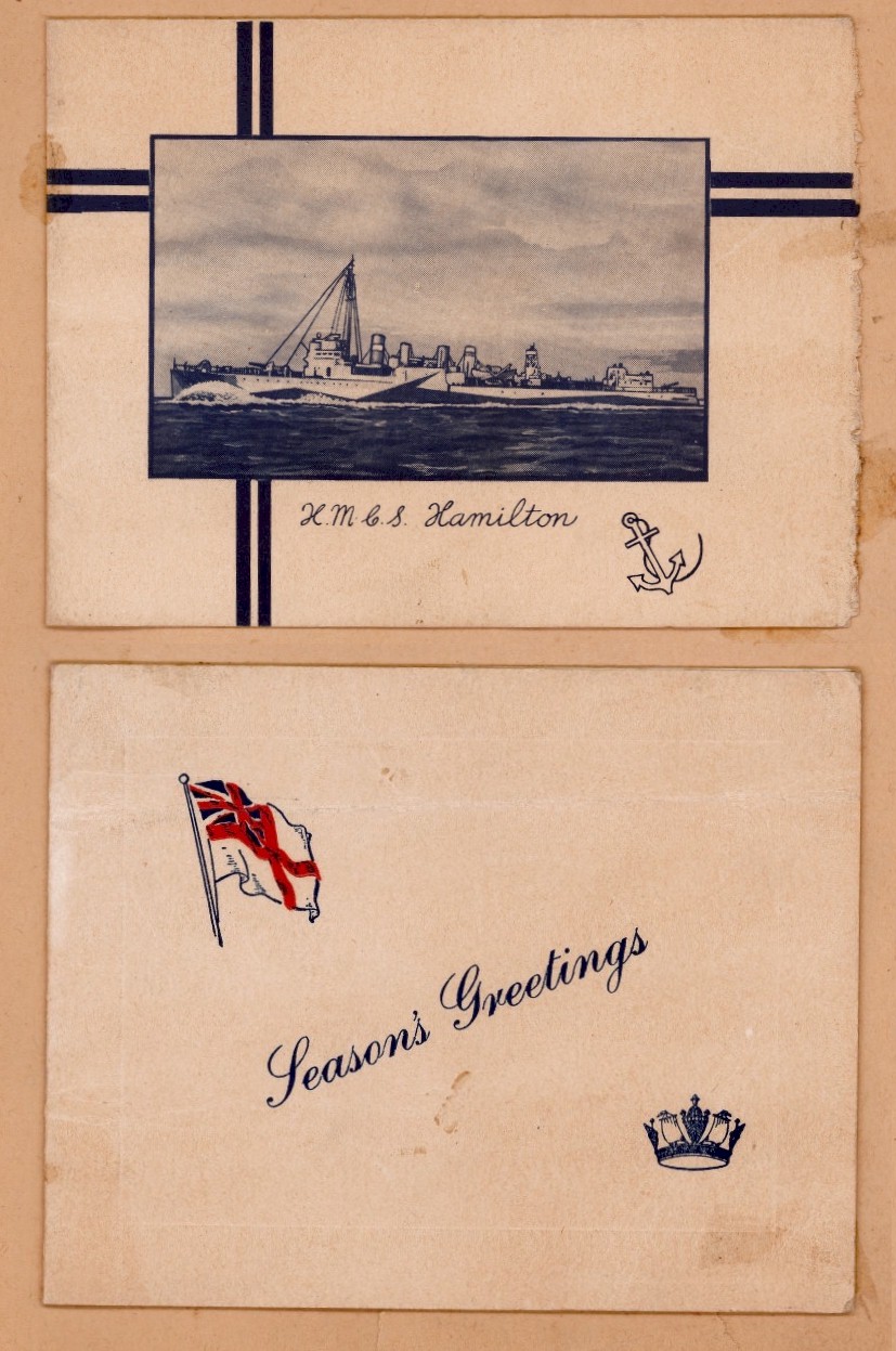 (JNC010) HMCS HAMILTON Christmas Card (JNC011) James Cox (right) and unknown CPO on HMCS HAMILTON (JNC012) HMCS BITTERSWEET Christmas Card (JNC013) Sailors on HMCS BITTERSWEET
