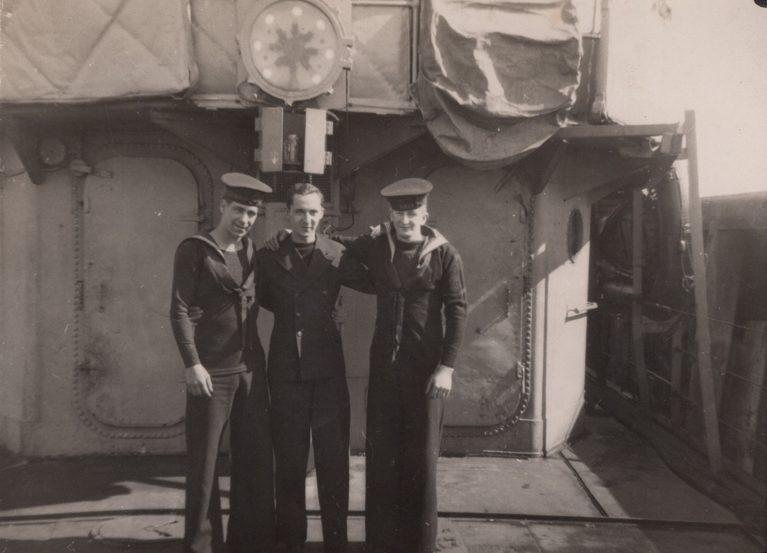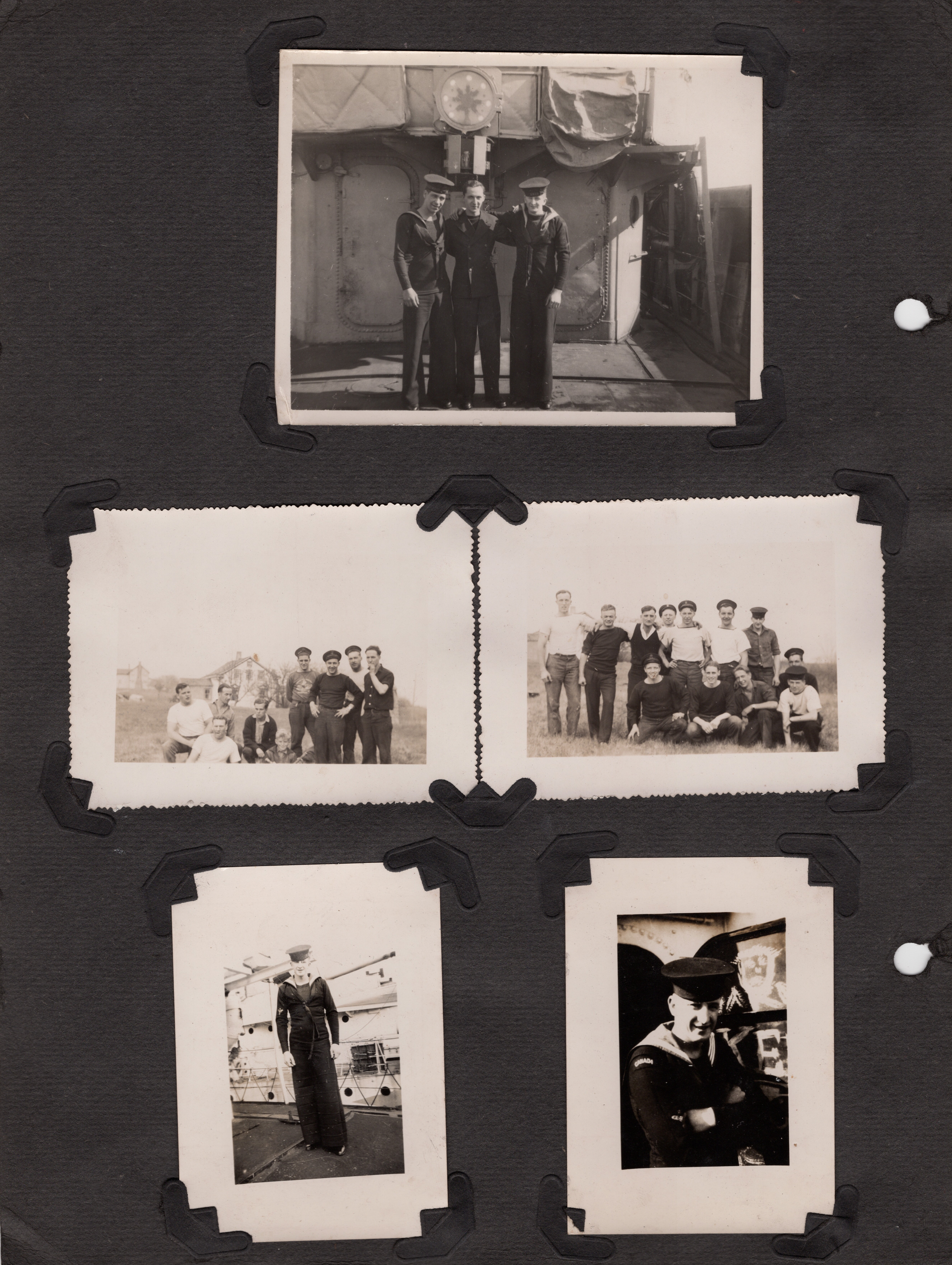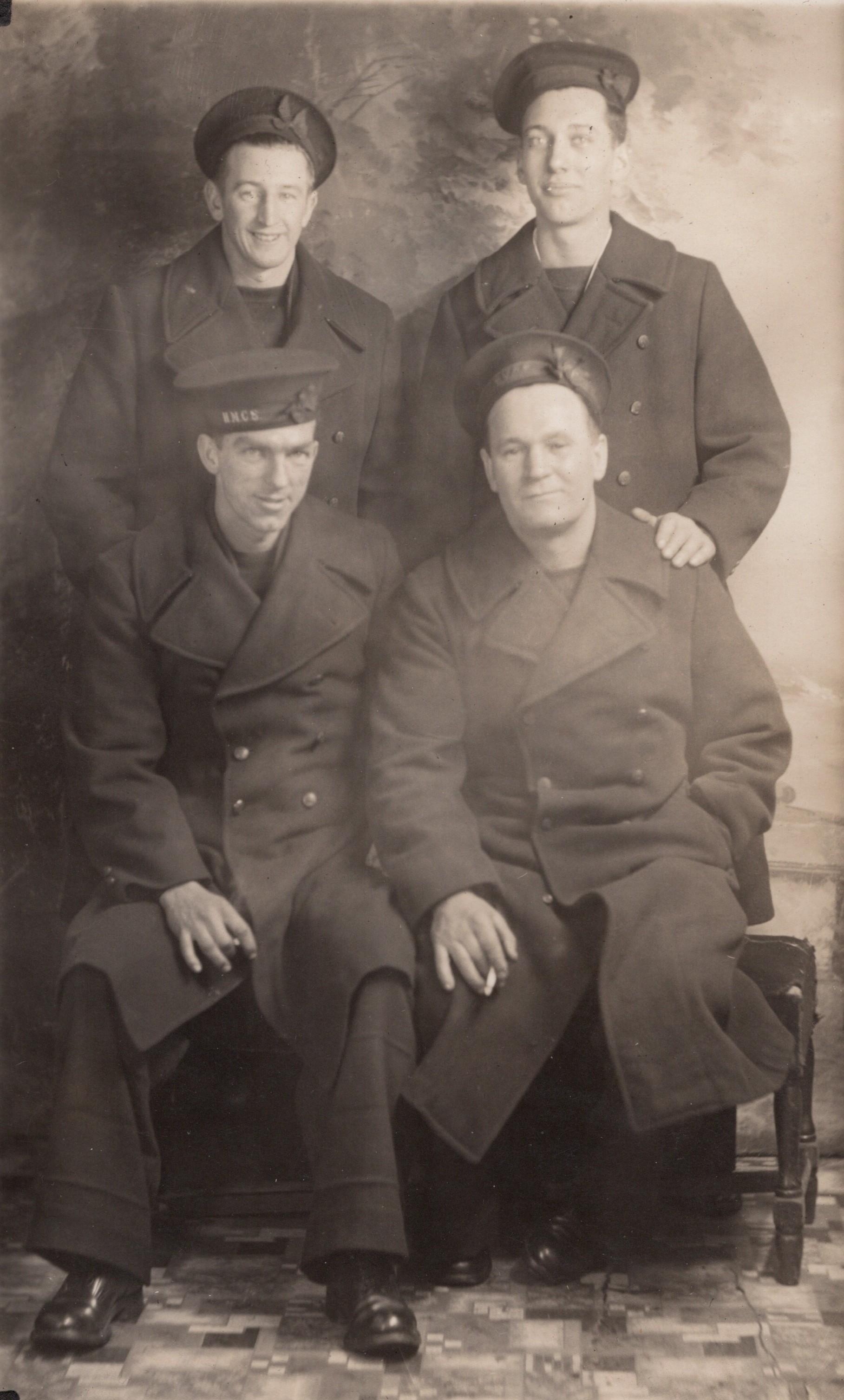 (JNC013) LCdr R. J. Herman, RCNR, Commanding Officer HMCS MONTREAL awarded the O.B.E. (JNC014) Unknown friend / shipmate of James Cox (JNC015) Portrait of friends / shipmates. James Cox, back row on left. (JNC016) Unknown friend / shipmate (JNC017) James Cox with unknown friend / shipmate