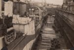 (JNC077) HMCS HAMILTON I24 entering unknown harbour while an unknown warship, visible astern of her, heads out to sea (JNC078) Unknown harbour shoreline (JNC079) Depth charge explodes astern of HMCS HAMILTON I24 (JNC080) HMCS HAMILTON I24 - Looking aft down the port side from the bridge (JNC081) Unknown Town-class destroyer covered in ice. Based on the angle of the photo, the photo appears to be taken from HMCS HAMILTON I24 of a ship alongside her
