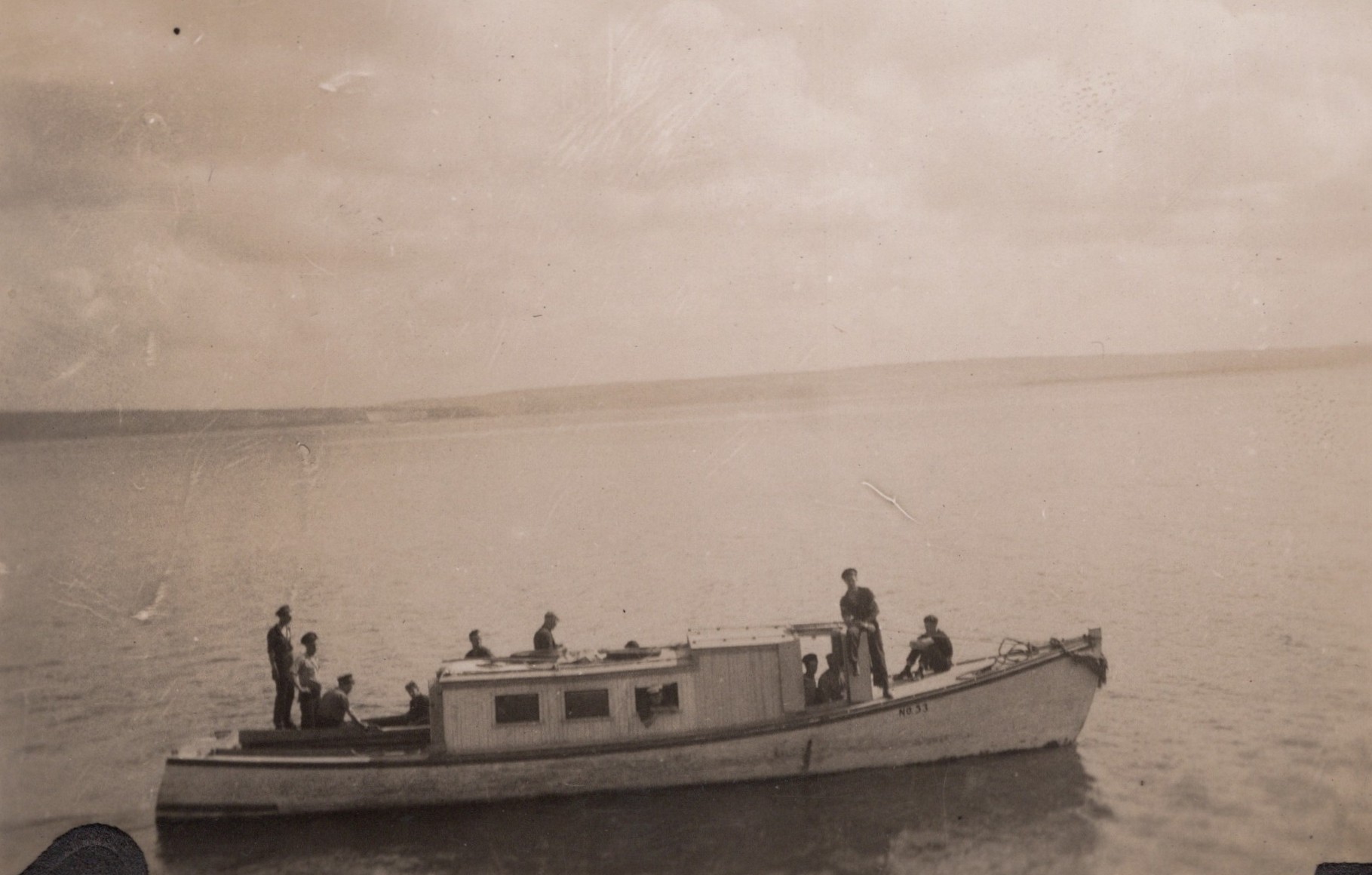 (JNC059) Harbour Craft NO. 33 passing near HMCS HAMILTON I24 (JNC060 - JNC061) Small landing craft approaching HMCS HAMILTON I24 - likely carrying personnel returning to ship