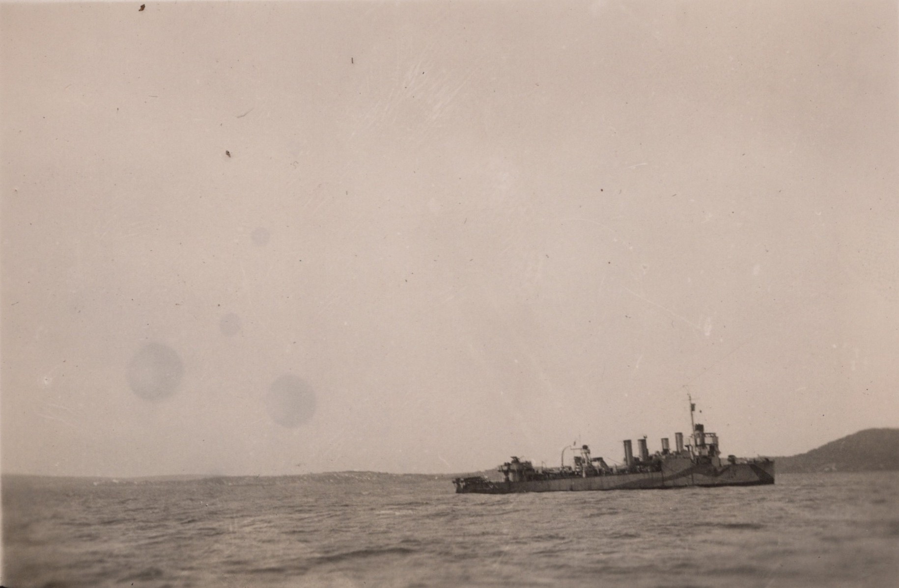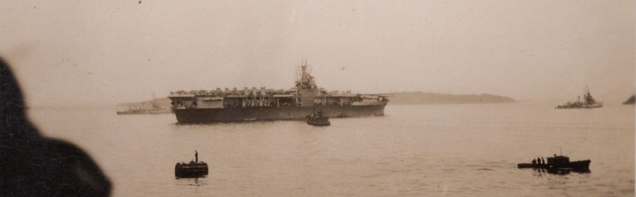 JNC053 (JNC053) Unknown American aircraft carrier with her destroyer escorts. Photo believed to have been taken in Halifax Harbour.