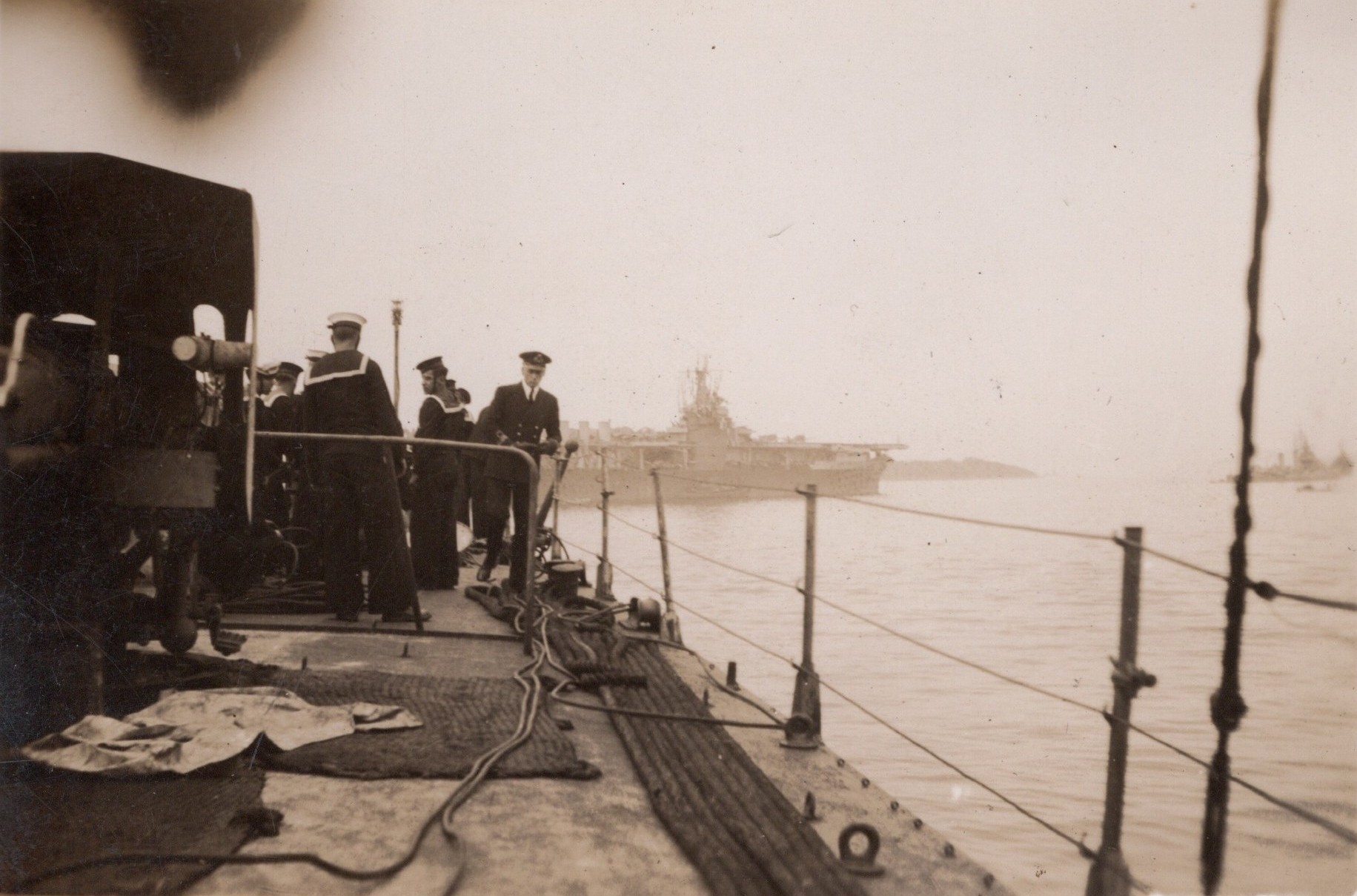(JNC054 - JNC055) Unknown American aircraft carrier with her destroyer escorts. Photos believed to have been taken in Halifax Harbour.