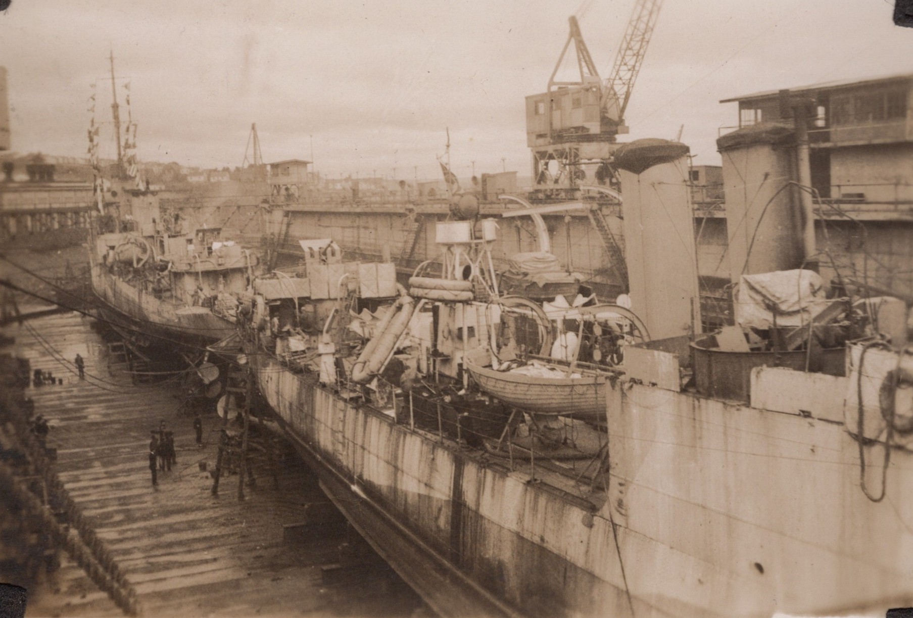 Ships served in: WINDSOR DIVISION RCNVR - Enlisted 11 Nov 1940 * Commenced Active Service 11 Nov 1940 as a Stoker 2nd Class, RCNVR HMCS STADACONA - Drafted to STADACONA 03 Dec 1940 HMCS HAMILTON - Drafted to HAMILTON 04 Jun 1941 * Rated Stoker 1st Class, RCNVR 03 Oct 1941 HMCS STADACONA - Drafted to STADACONA 09 Jul 1943 HMCS HAMILTON - Drafted to HAMILTON 09 Aug 1943 * Rated Acting Leading Stoker, RCNVR 15 Sep 1943 HMCS STADACONA - Drafted to STADACONA 01 Jun 1944 HMCS PEREGRINE - Drafted to PEREGRINE 20 Nov 1944 HMCS BITTERSWEET - Drafted to BITTERSWEET 24 Nov 1944 * Rated Acting Stoker Petty Officer, RCNVR 01 Oct 1944 HMCS NIOBE - Drafted to NIOBE 19 Jun 1945 HMCS PEREGRINE - Drafted to PEREGRINE 25 Jun 1945 HMCS HUNTER - Drafted to HUNTER 07 Jul 1945 * Demobilized 07 Aug 1945