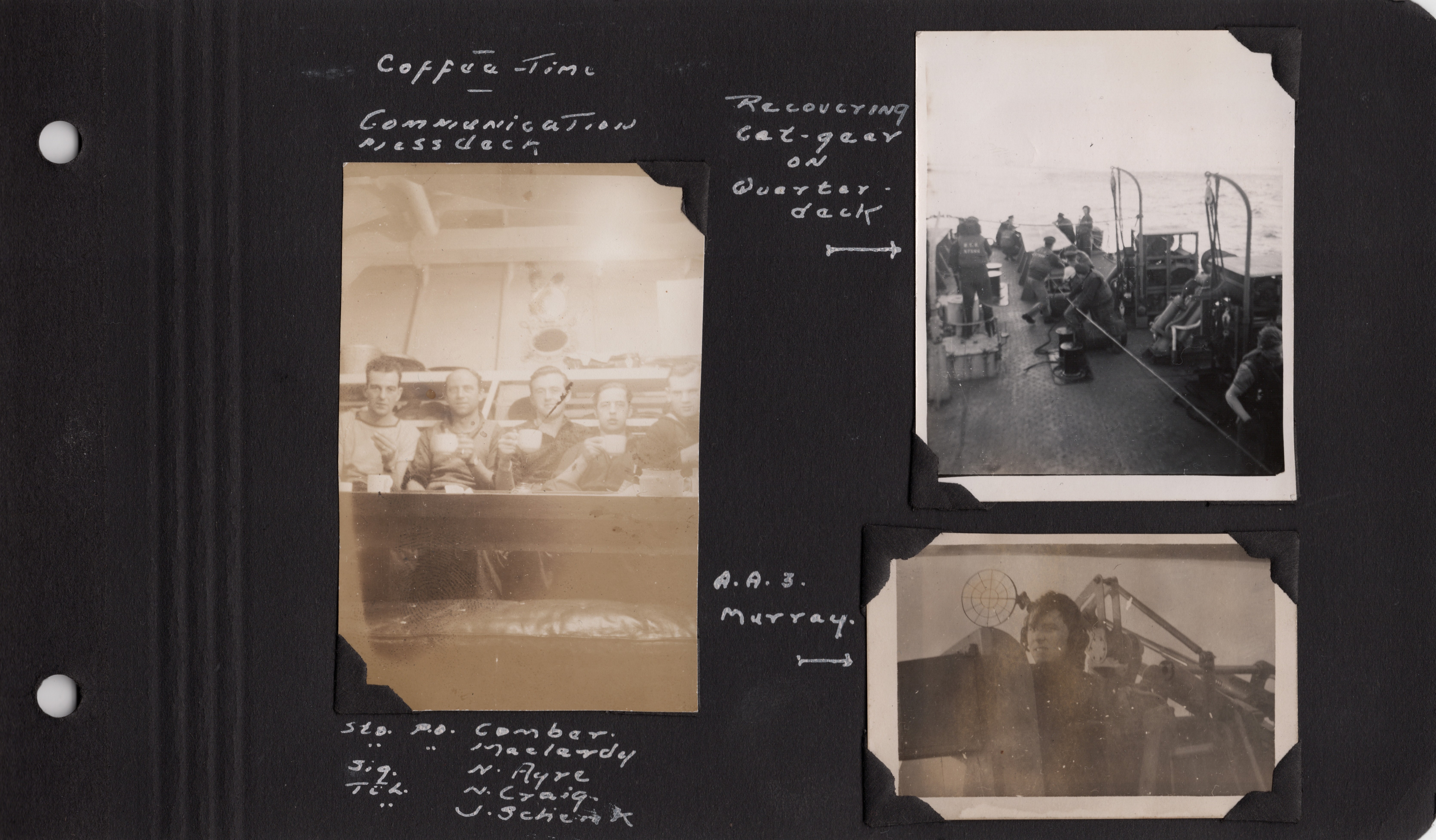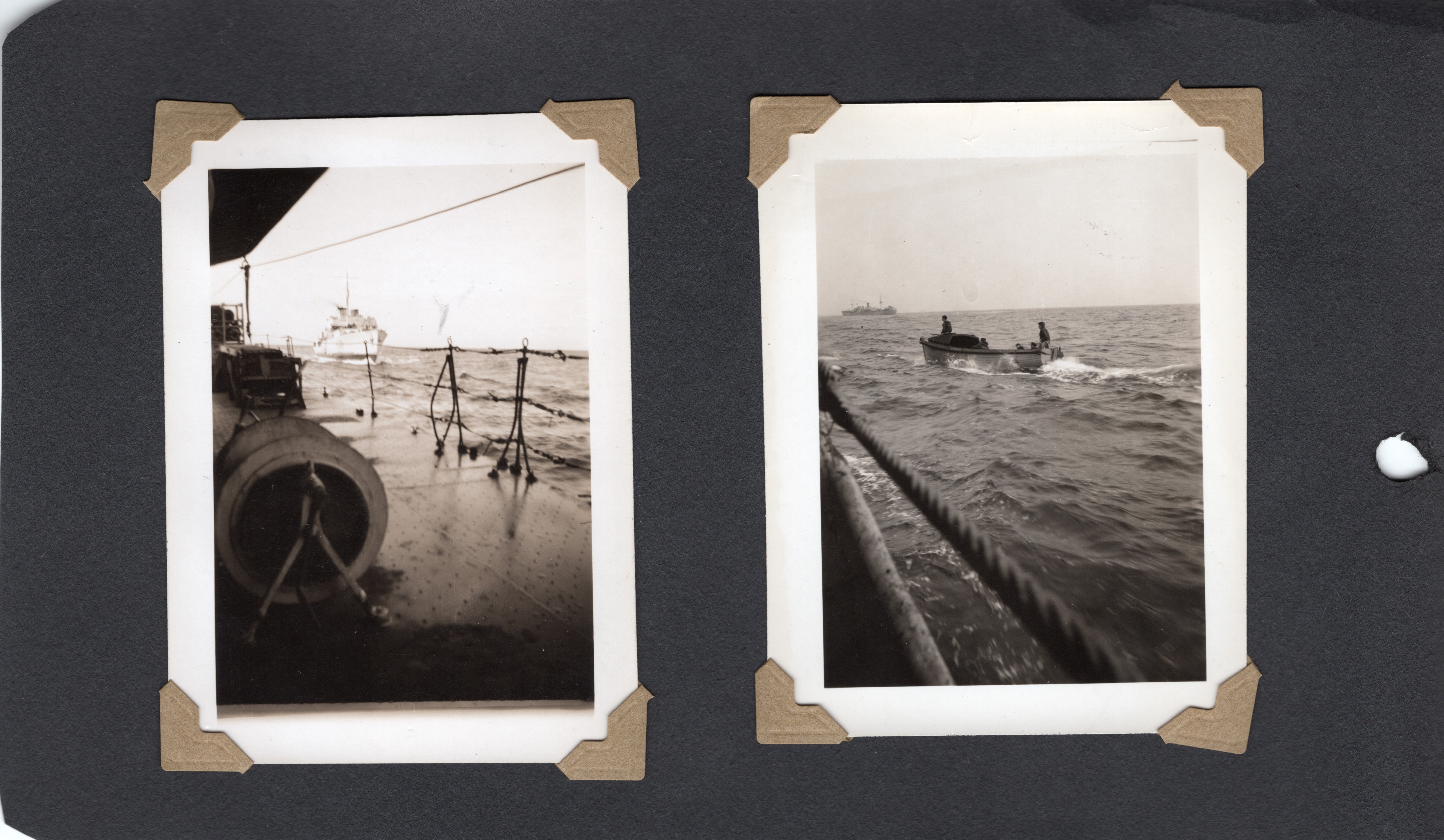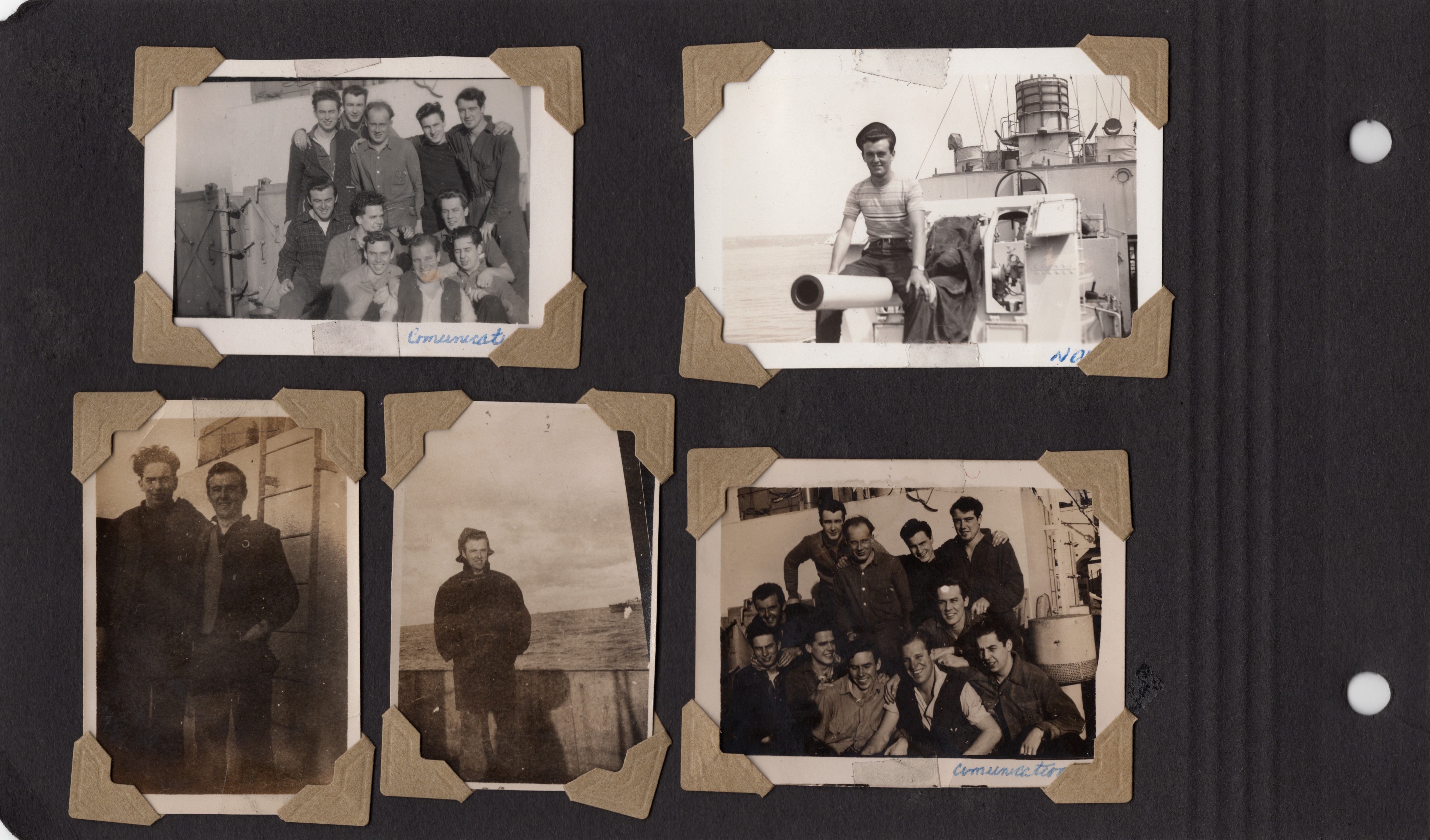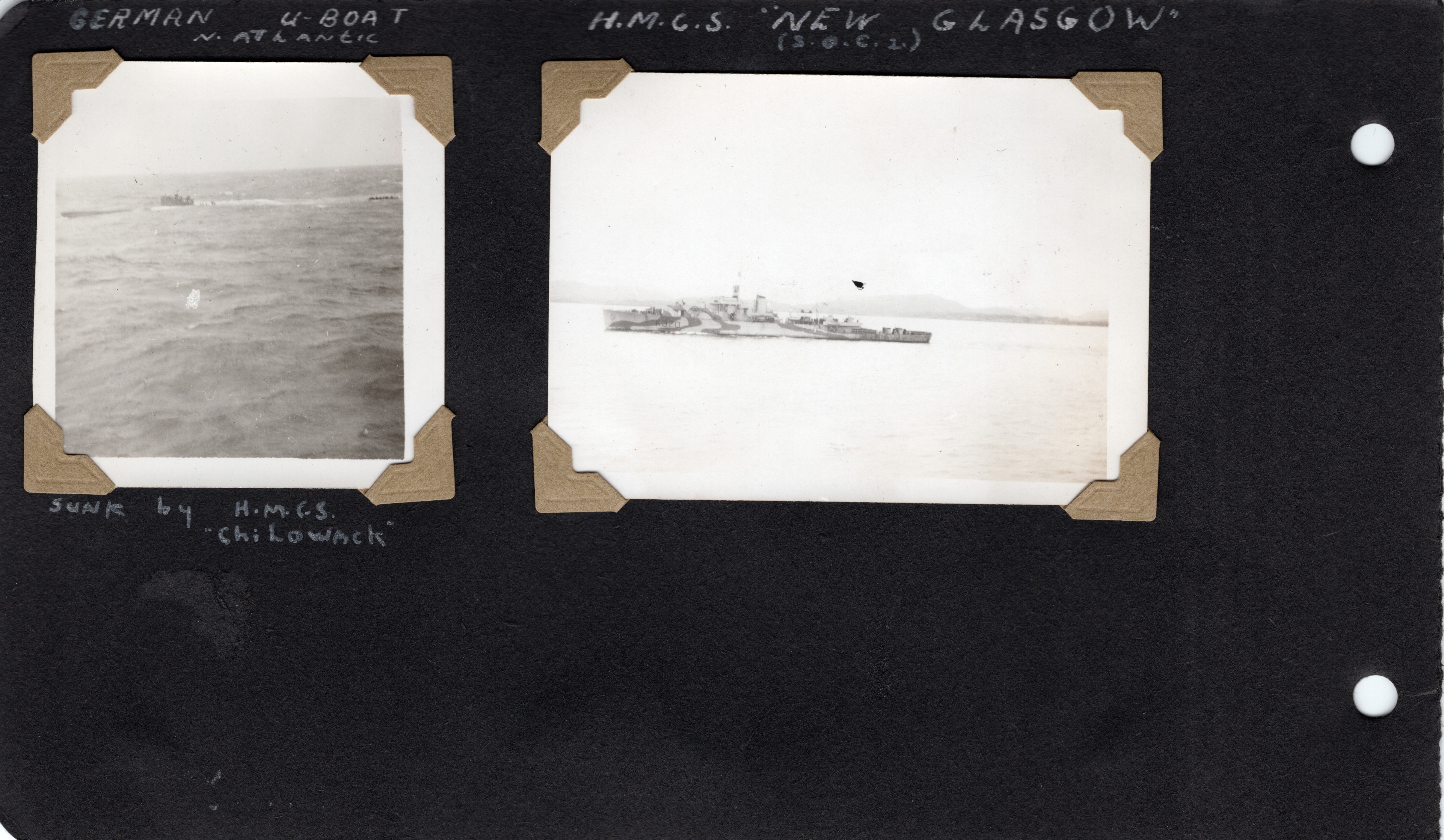 (NFA014) Newfie bound Halifax Convoy - May 1944 (NFA015) J. May on lookout duty on HMCS NEW GLASGOW K320 while in convoy - May 1944 (NFA016) Signalman Norman Ayre (left) and Telegraphist John Schenk off Ireland on HMCS NEW GLASGOW K320 - May 1944 (NFA017) HMCS NEW GLASGOW K320'S boat's crew going for patient - May 1944 (NFA018) HMCS NEW GLASGOW K320'S boat's crew returning with patient from HMCS GIFFARD K402