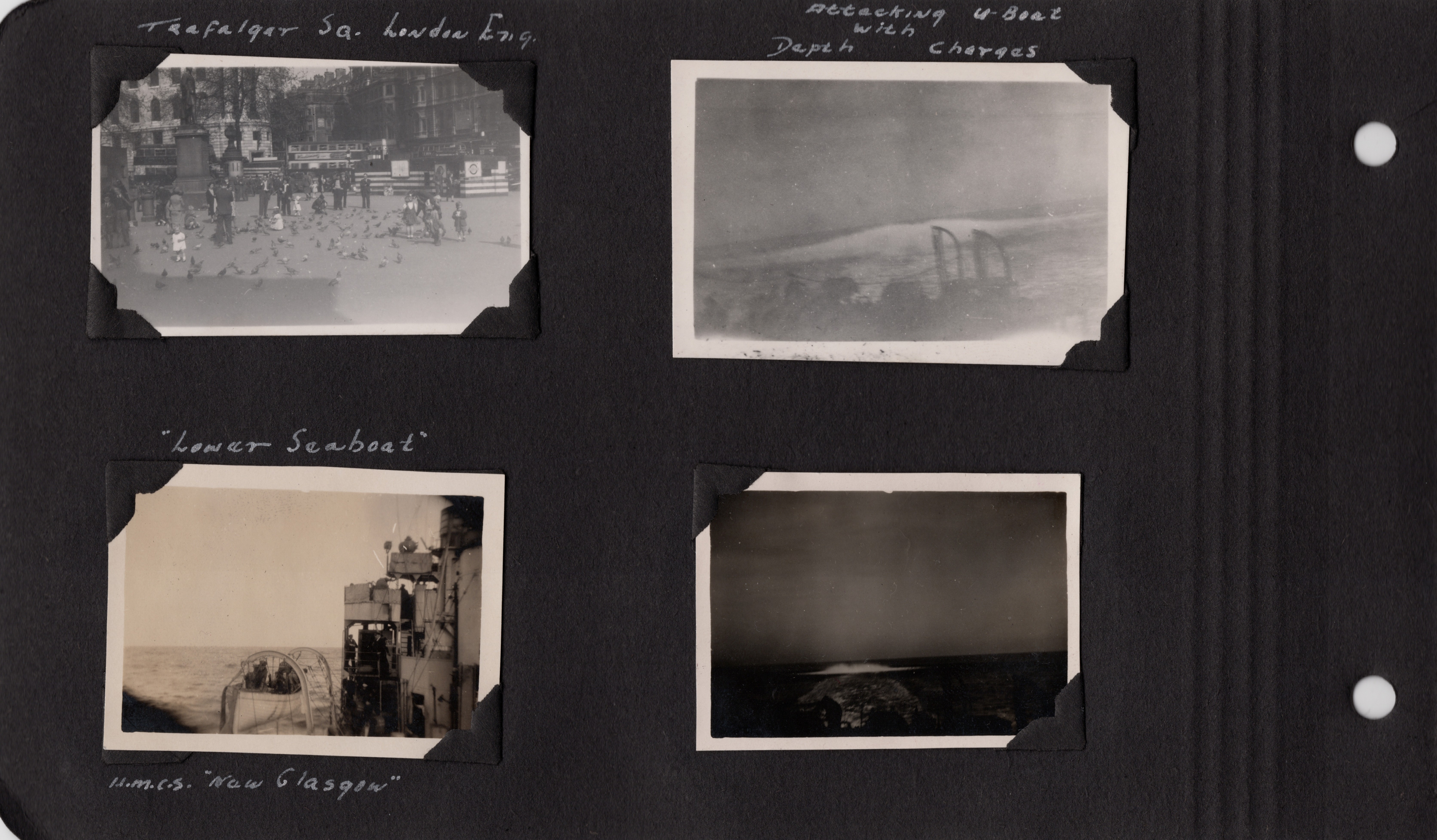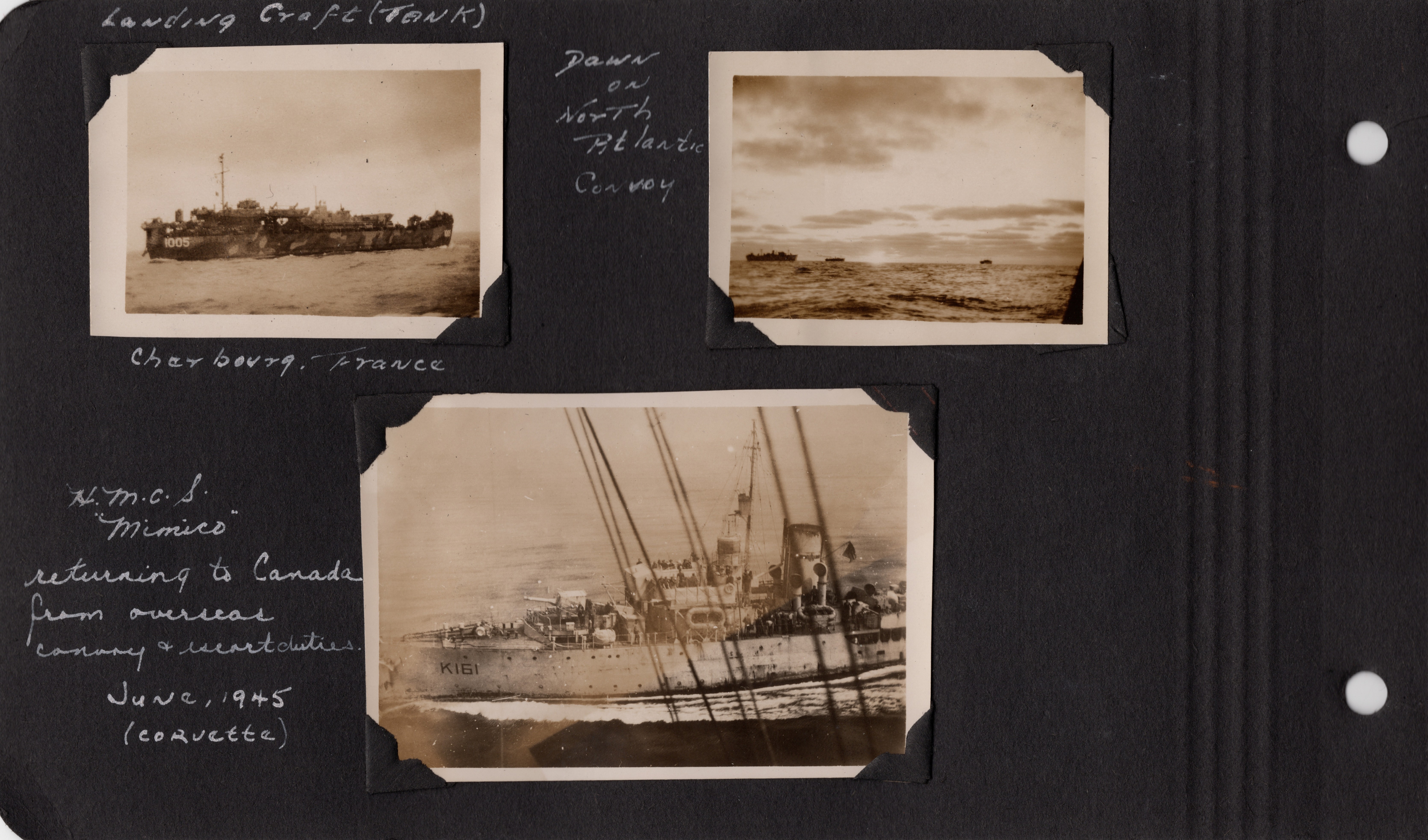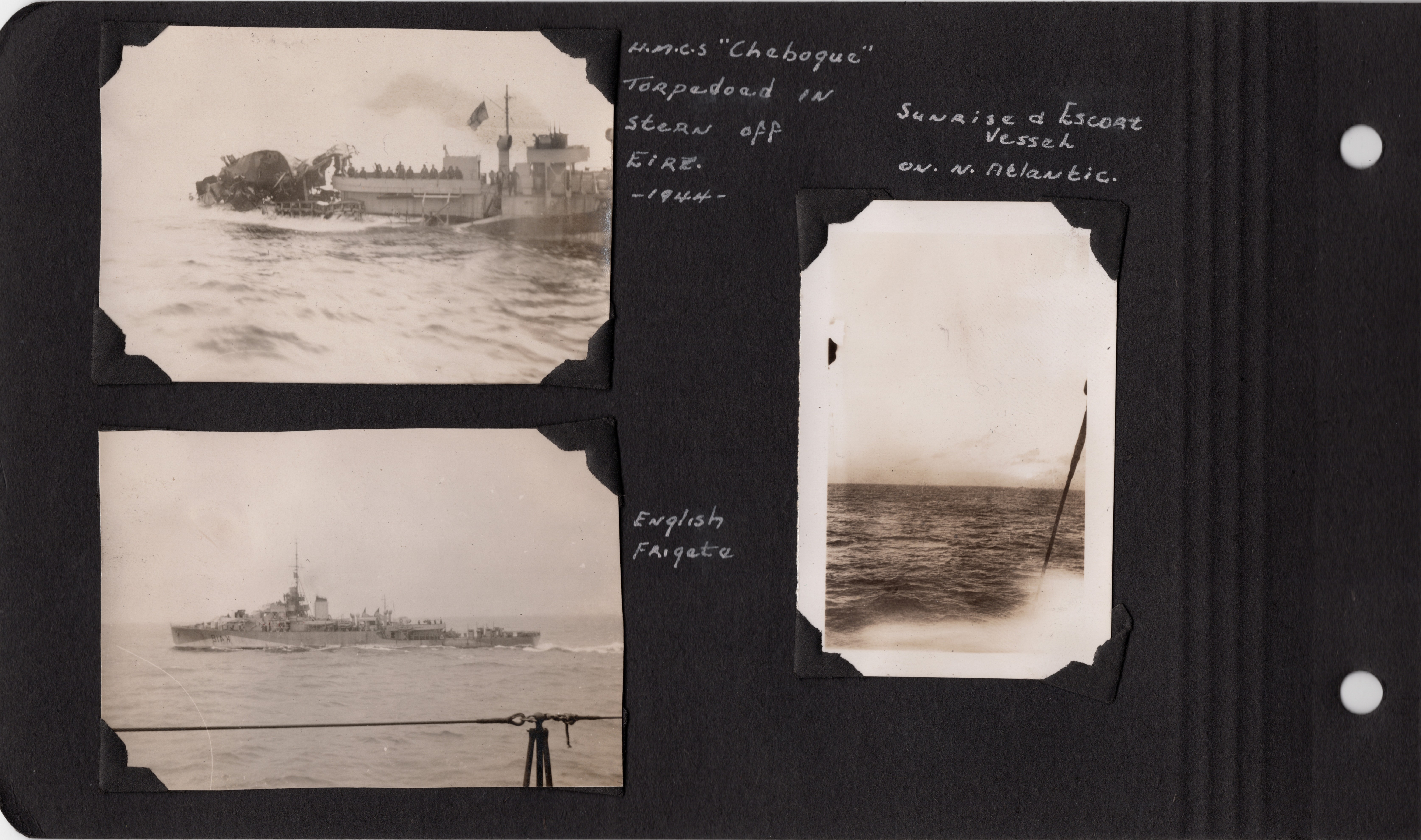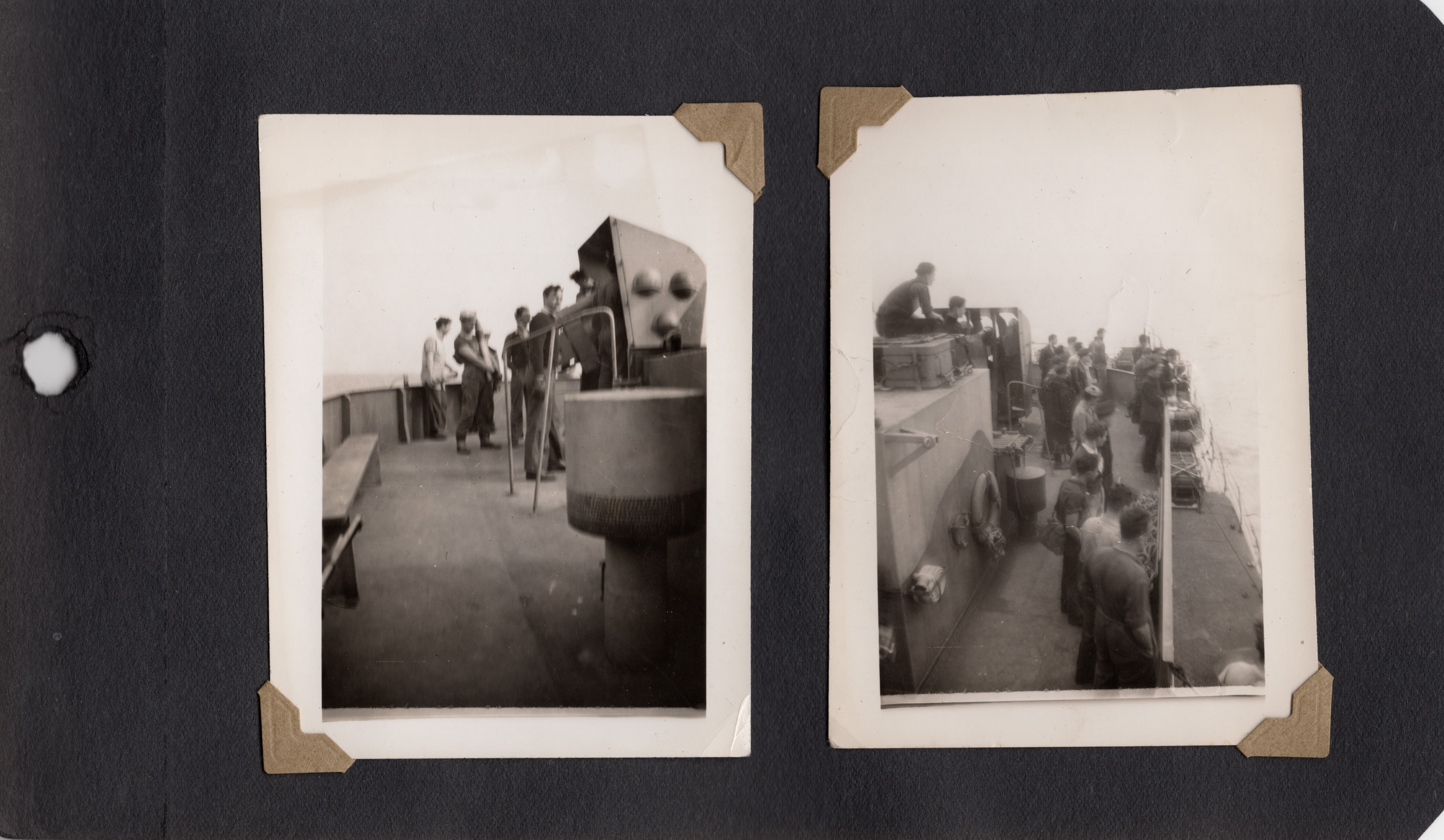 (NFA014) Newfie bound Halifax Convoy - May 1944 (NFA015) J. May on lookout duty on HMCS NEW GLASGOW K320 while in convoy - May 1944 (NFA016) Signalman Norman Ayre (left) and Telegraphist John Schenk off Ireland on HMCS NEW GLASGOW K320 - May 1944 (NFA017) HMCS NEW GLASGOW K320'S boat's crew going for patient - May 1944 (NFA018) HMCS NEW GLASGOW K320'S boat's crew returning with patient from HMCS GIFFARD K402
