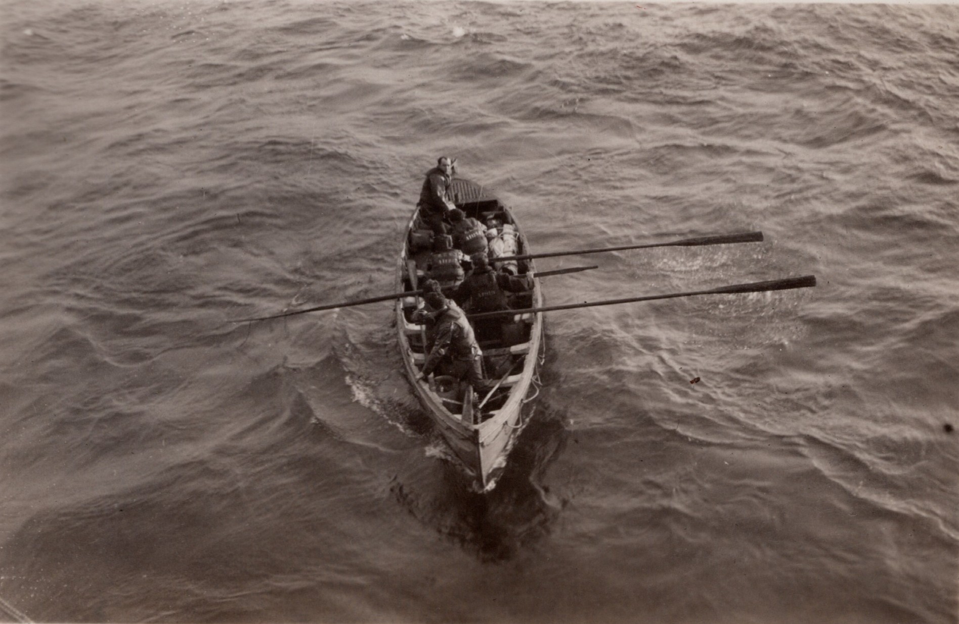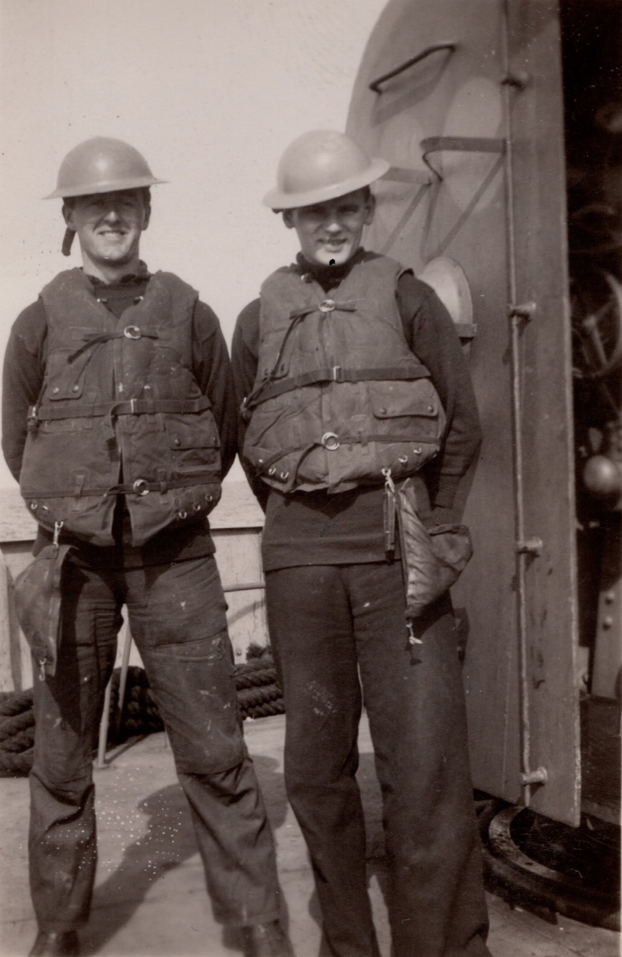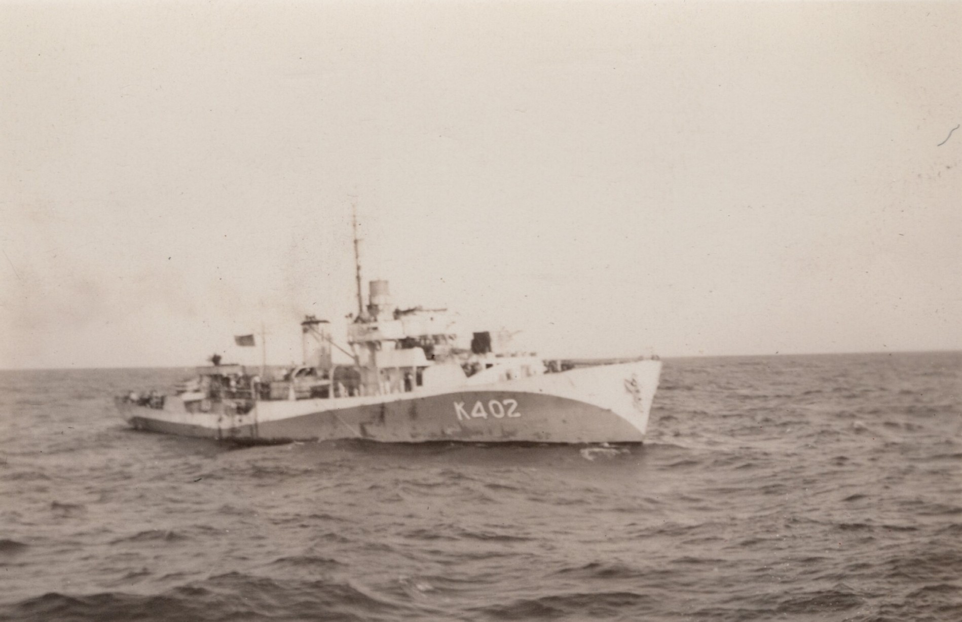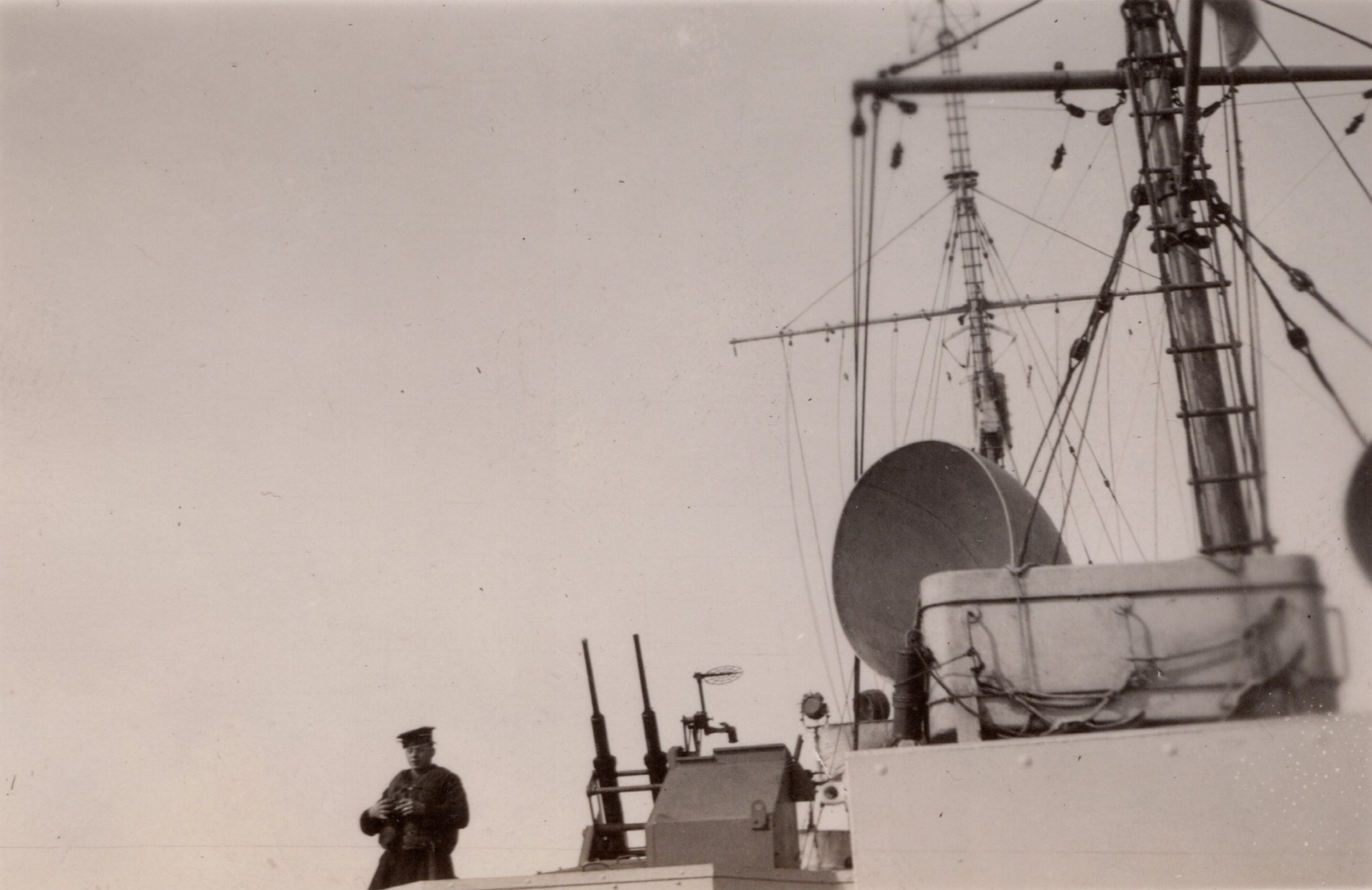 (NFA014) Newfie bound Halifax Convoy - May 1944 (NFA015) J. May on lookout duty on HMCS NEW GLASGOW K320 while in convoy - May 1944 (NFA016) Signalman Norman Ayre (left) and Telegraphist John Schenk off Ireland on HMCS NEW GLASGOW K320 - May 1944 (NFA017) HMCS NEW GLASGOW K320'S boat's crew going for patient - May 1944 (NFA018) HMCS NEW GLASGOW K320'S boat's crew returning with patient from HMCS GIFFARD K402
