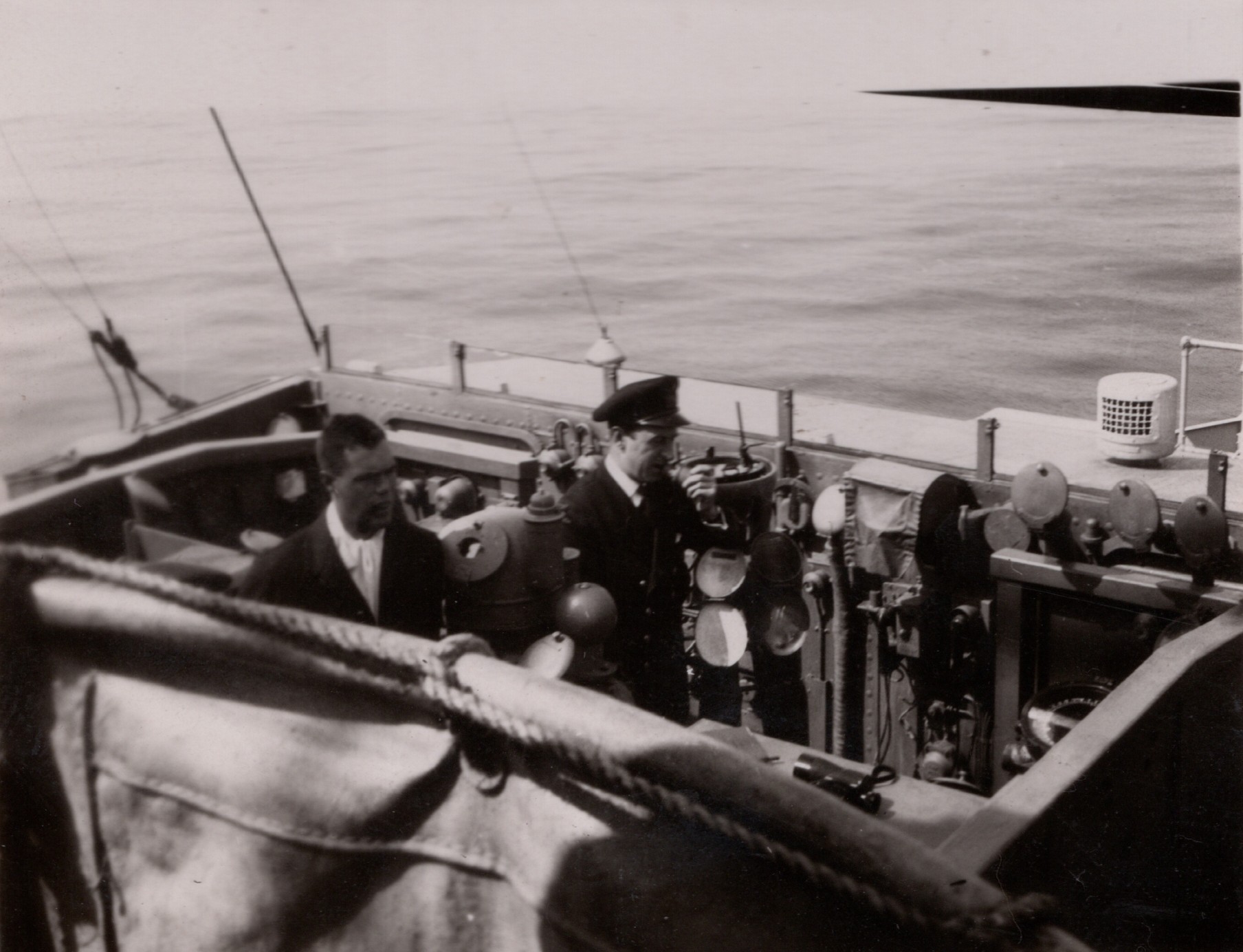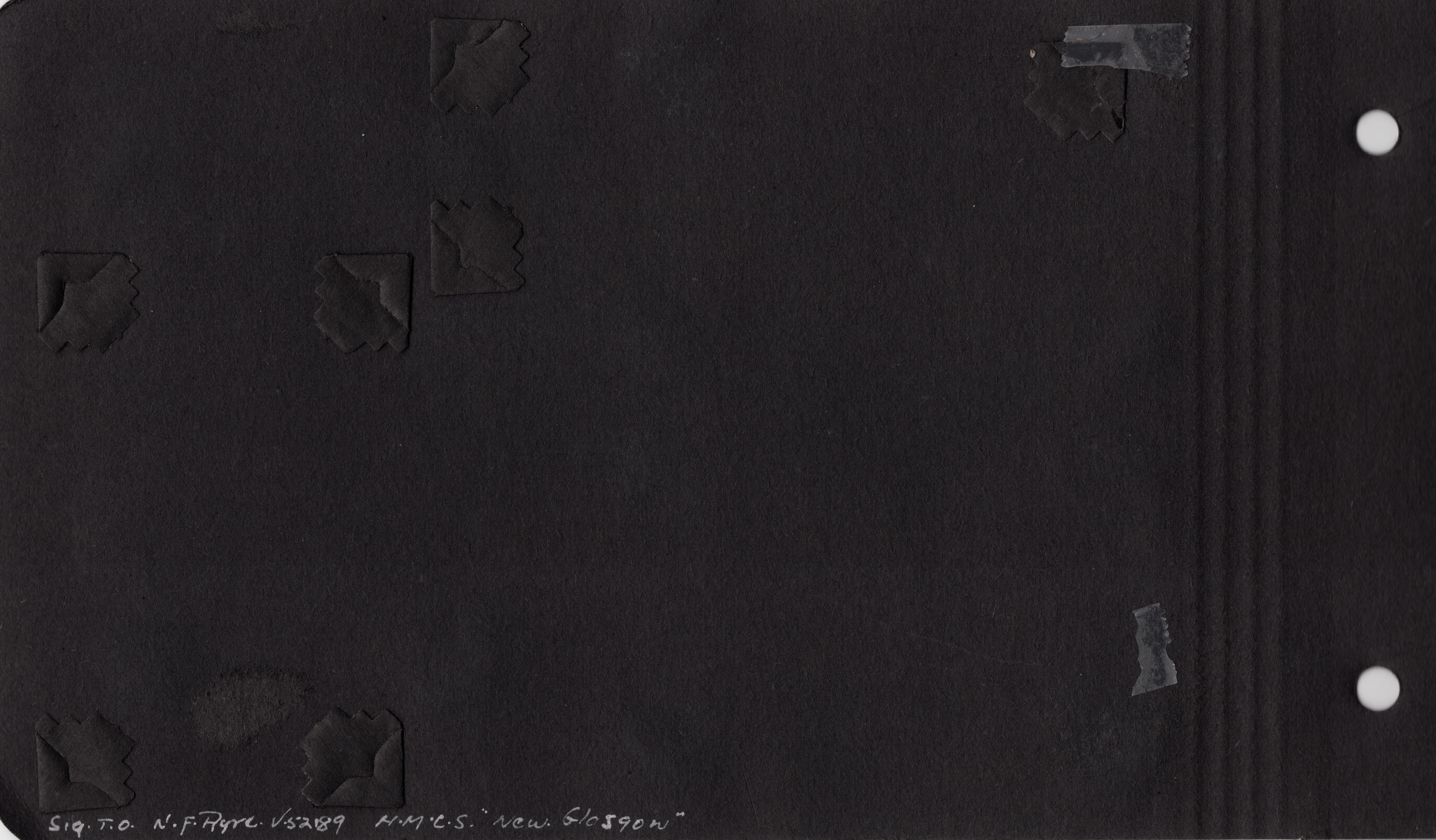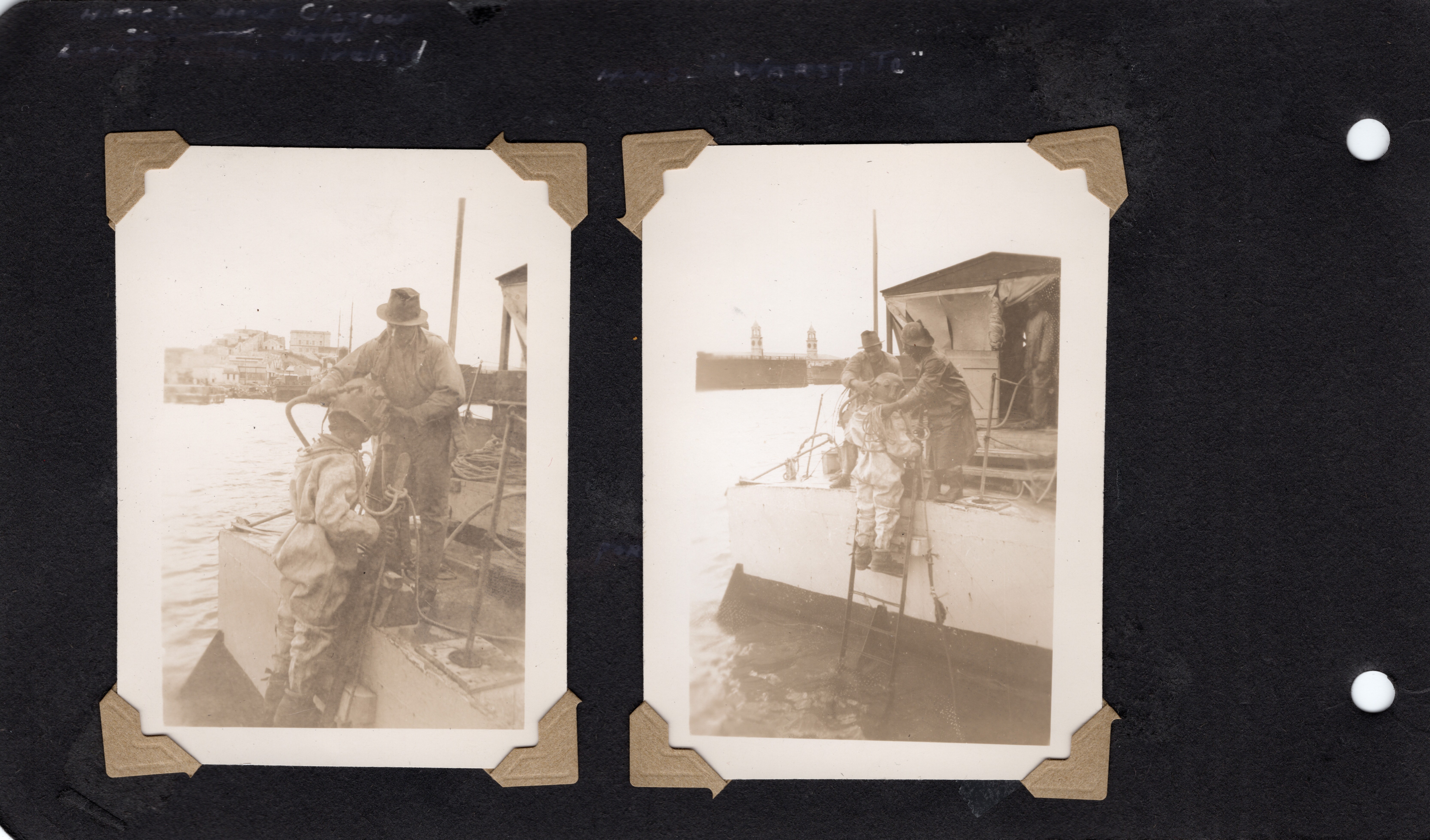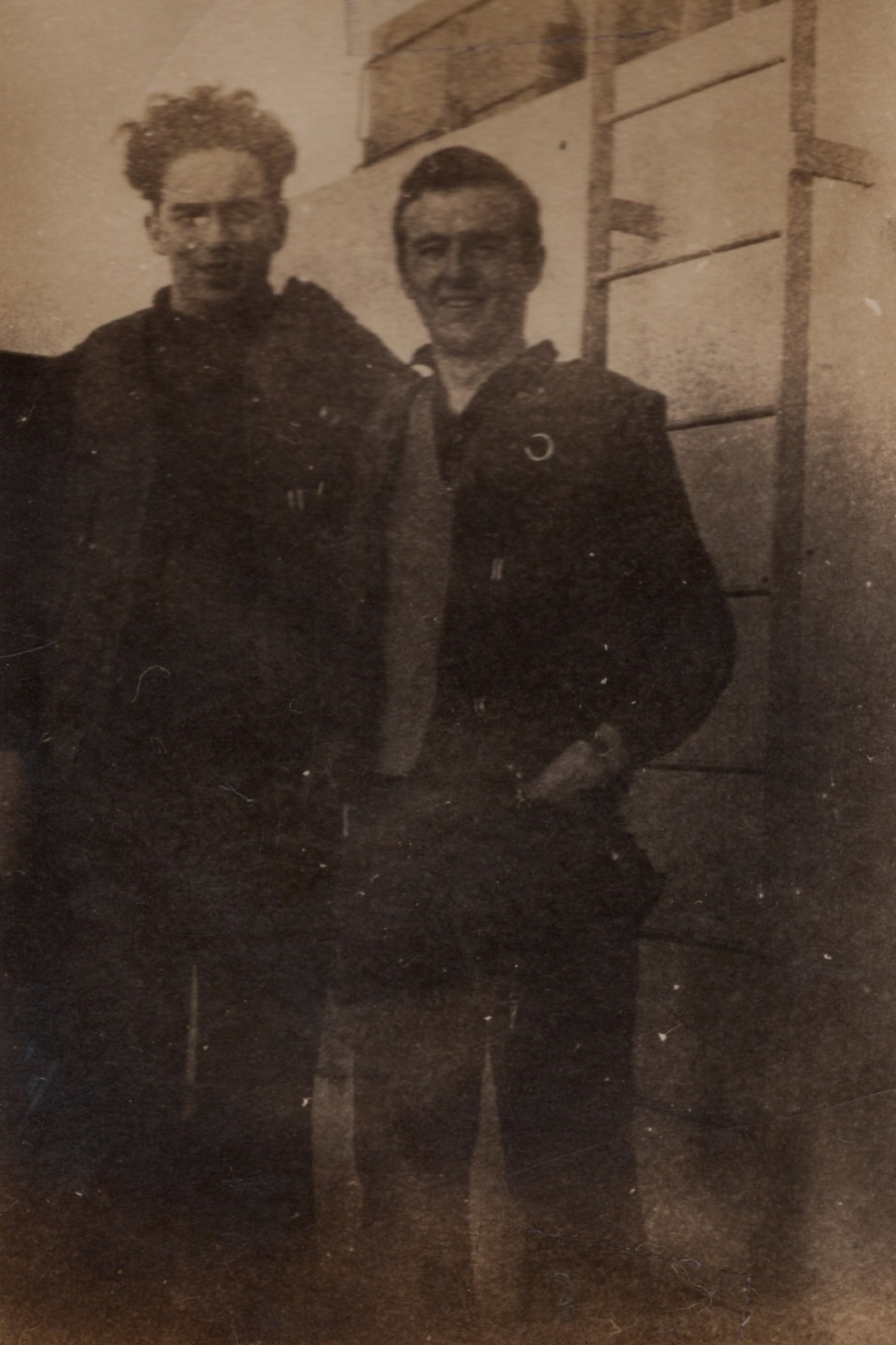 (NFA006) A/LCdr Hanbury (the Jimmy) and LCdr Hall (Old Man) [on HMCS NEW GLASGOW K320 en route to Halifax from the west coast - 1944 // back of photo. Note: The New Glasgow arrived in Halifax on 17 Feb 1944. (NFA007) HMCS NEW GLASGOW K320 off Halifax, NS - Feb 1944 (NFA008) "Chippy" on HMCS NEW GLASGOW K320 off Halifax, NS