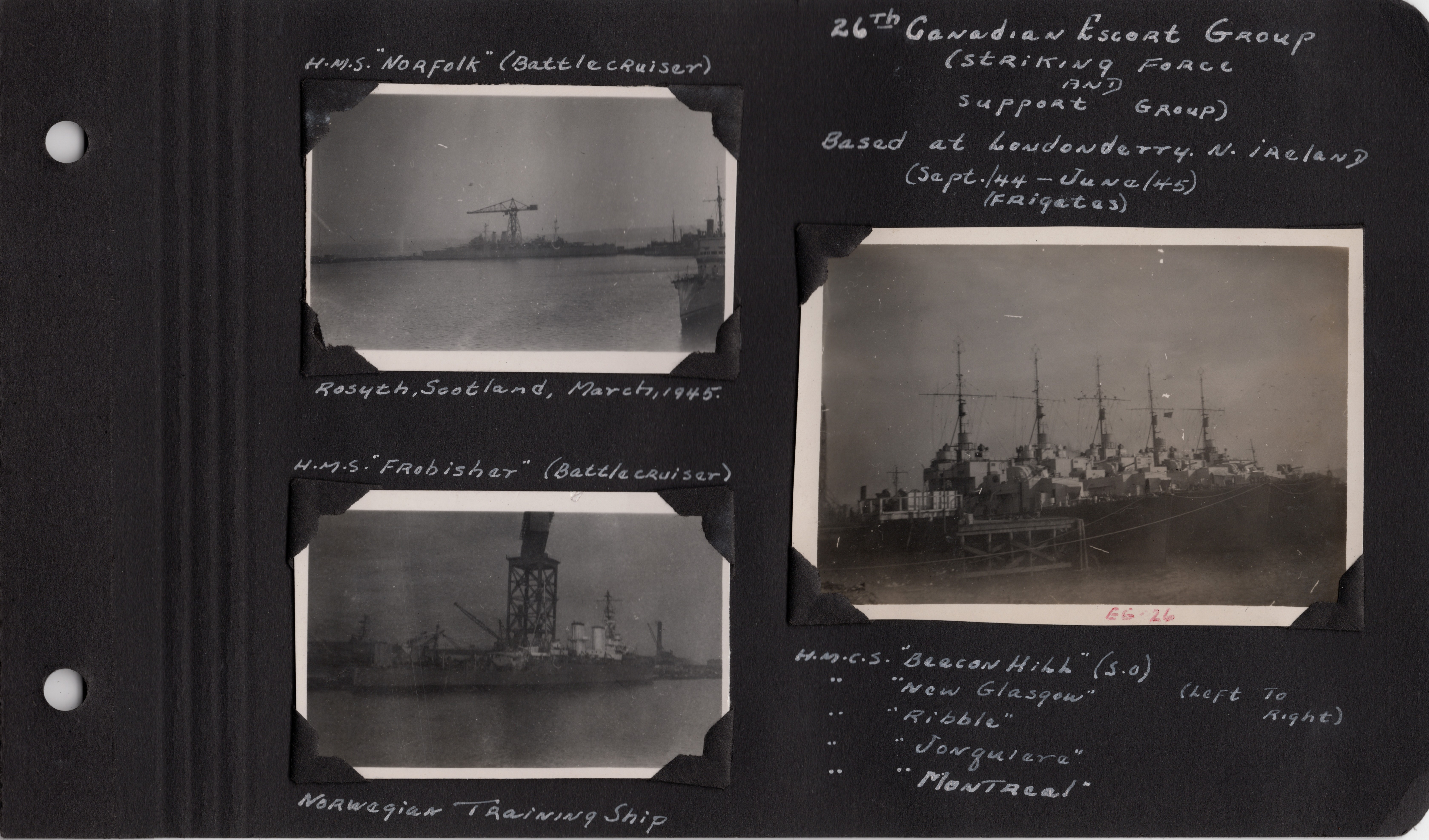 (NFA117) HMS FROBISHER D81 - A Hawkins Class Heavy Cruiser (NFA118) HMS NORFOLK - A County Class Heavy Cruiser, Rosyth, Scotland - Mar 1945 (NFA119) HMCS NEW GLASGOW K320'S soccer team, Rosyth, Scotland - 1945