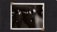 (NFA138) A band leading a parade march-past at an unknown location - undated (NFA139) Senior officer inspecting what appears to be new entry recruits - undated // RCN photo negative number F-1946 (NFA140) - Unknown event taking place at HMCS YORK - undated