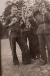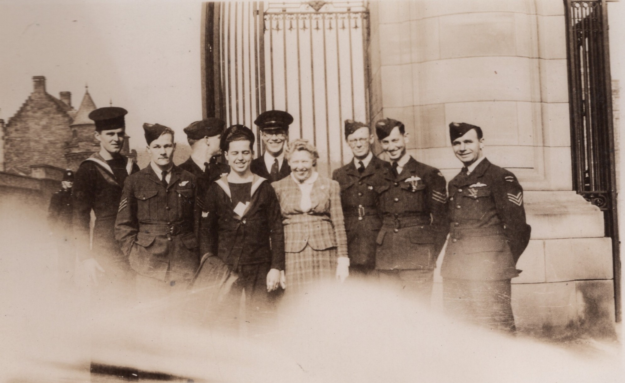 (NFA088) Edinburgh Castle on a foggy day, Edinburgh, Scotland (NFA089) "Gang we were touring with when touring Edinburgh, Scotland" - Sep 1944 (NFA090) Signalman Norman Ayre, Telegraphist Norman Craig, Telegraphist John Schenk on 6 days leave in Edinburgh, Scotland. Edinburgh Castle in the background - Sep 1944 (NFA091) Telegraphist Norman Craig, a soldier from Galt, Ontario, and Telegraphist John Schenk in Hollyrood Palace grounds, Edinburgh, Scotland, waiting for King and Queen (NFA092) "The Three Musketeers" - Telegraphist Norman Craig, Signalman Norman Ayre, Telegraphist John Schenk in Hollyrood Palace grounds, Edinburgh, Scotland, waiting for King and Queen - Sep 1944