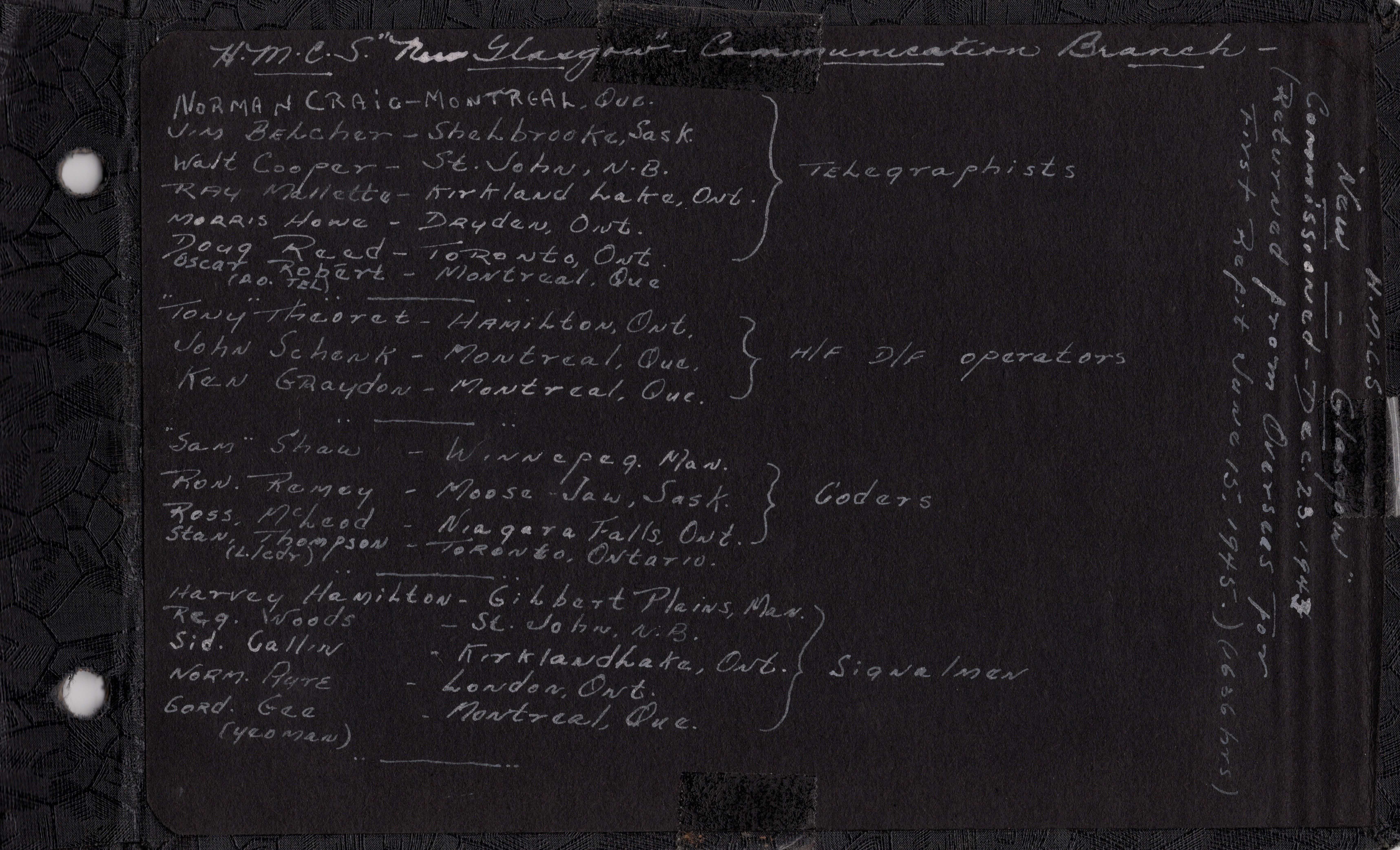 (NFA133) Communications Branch - HMCS NEW GLASGOW K320 - Undated
