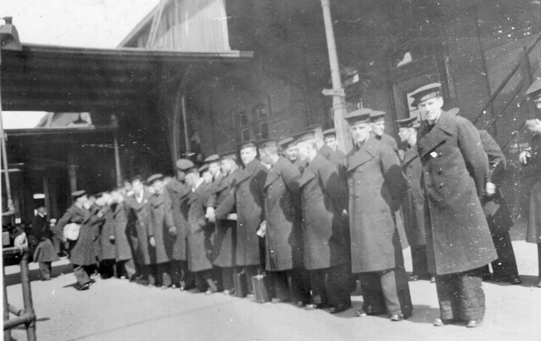 (RSR071 - RSR0174) Unidentified sailors posing for photos - location unknown - though likely the train station at Moncton, NB