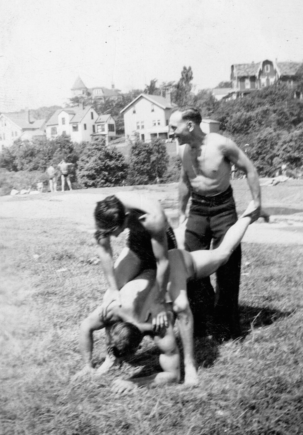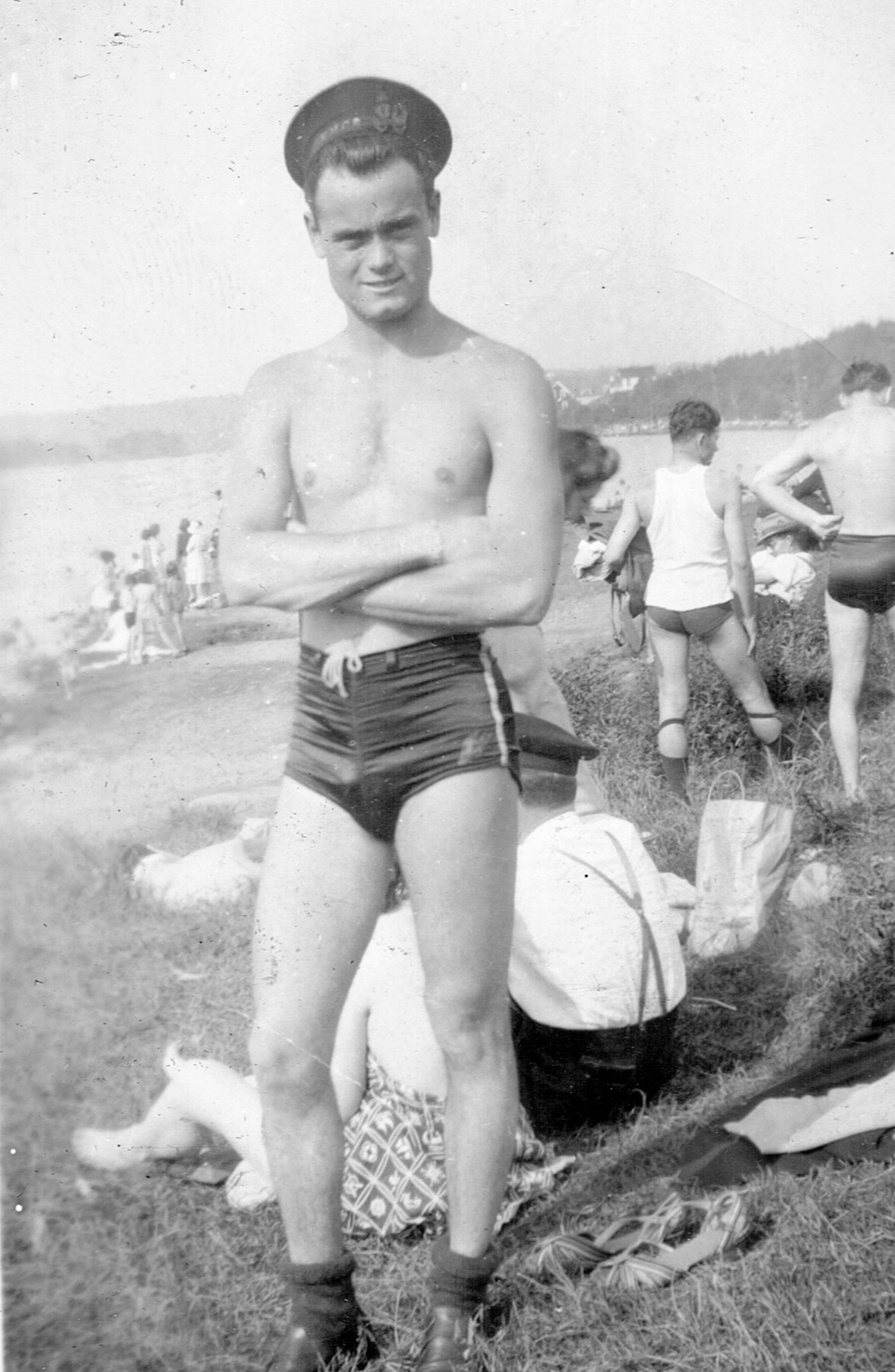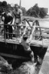 (RSR053 - RSR054) Unidentified sailors swimming at Lake Banook, Nova Scotia and (RSR055) taking part in antics on the lock at the entrance to the Shubenacadie Canal on Lake Banook