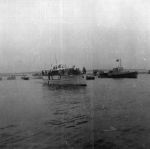 (RSR121) Unknown frigates (RSR122) Escort group laying a smoke screen. HMCS MEON in the foreground also making smoke. (RSR123) Merchant ship in unknown port (RSR124) Unknown corvette heading out to sea from Halifax. Georges Island off the to left of the photo (RSR125) Fishing schooner in an unknown port