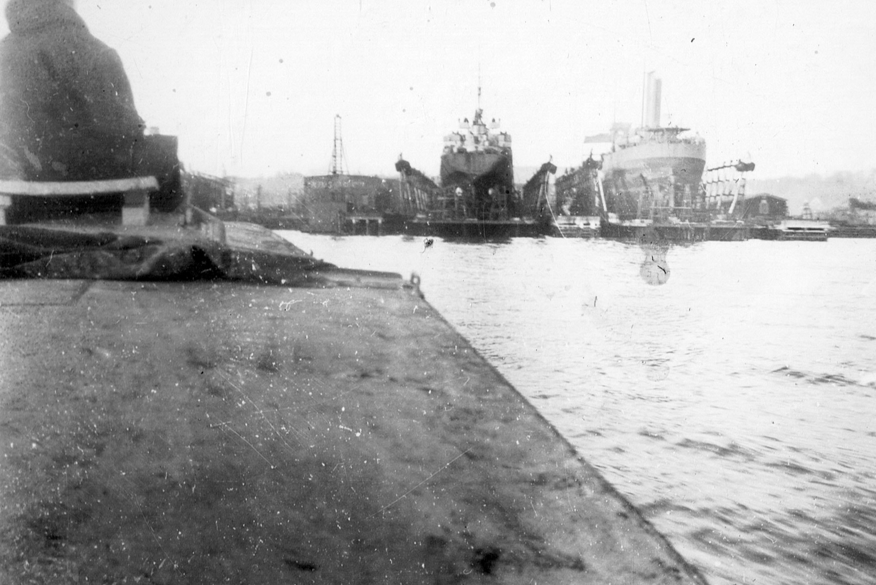 (RSR061) Unknown ships undergoing repairs at the Dartmouth Slips. The photo appears to be taken from a small harbour craft or barge