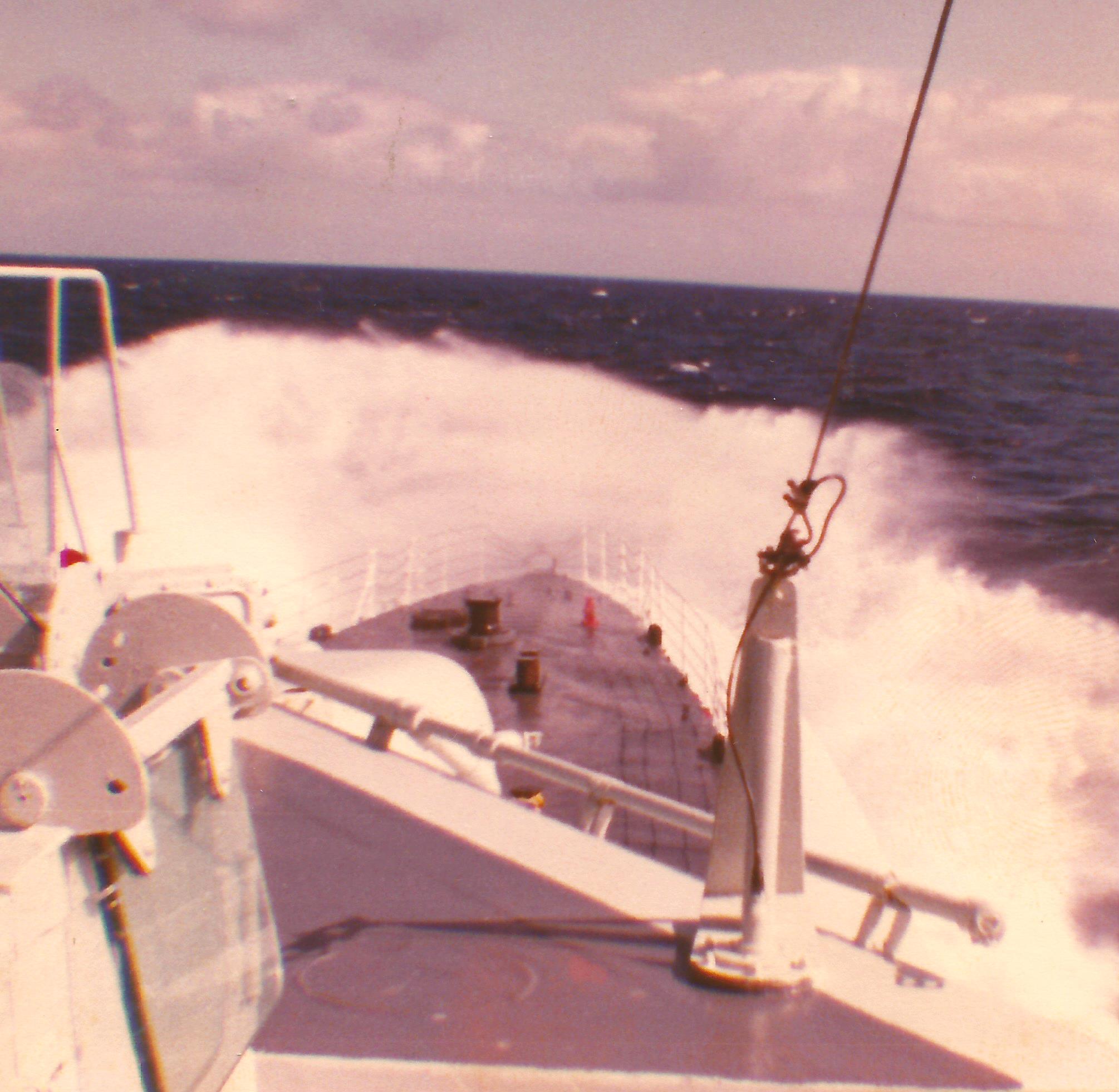 (JWB005) The bullring of HMCS Ottawa 229 - "Just a little pic I took of our Bullring. I got three days Birds for this because I was almost washed overboard trying to get it. Pic's JWB006 & JWB007) are where they said I had to be to take pics like that. I think 3 days Birds was worth it!!!" © Bill Hart 1984