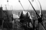 (CJR019) Clarence Reid with shipmate on the boat deck of HMCS CHAMBLY K116 (CJR020) Unknown sailor sitting in from of the minesweeping cables on HMCS CHAMBLY K116 (CJR021) Unknown officers and ratings on the bridge of HMCS CHAMBLY K116 (CRJ022) Unknown officers on HMCS CHAMBLY K116 (CRJ023) Unknown sailor on watch in an unknown space on HMCS CHAMBLY K116 - possibly in the ship's wheelhouse