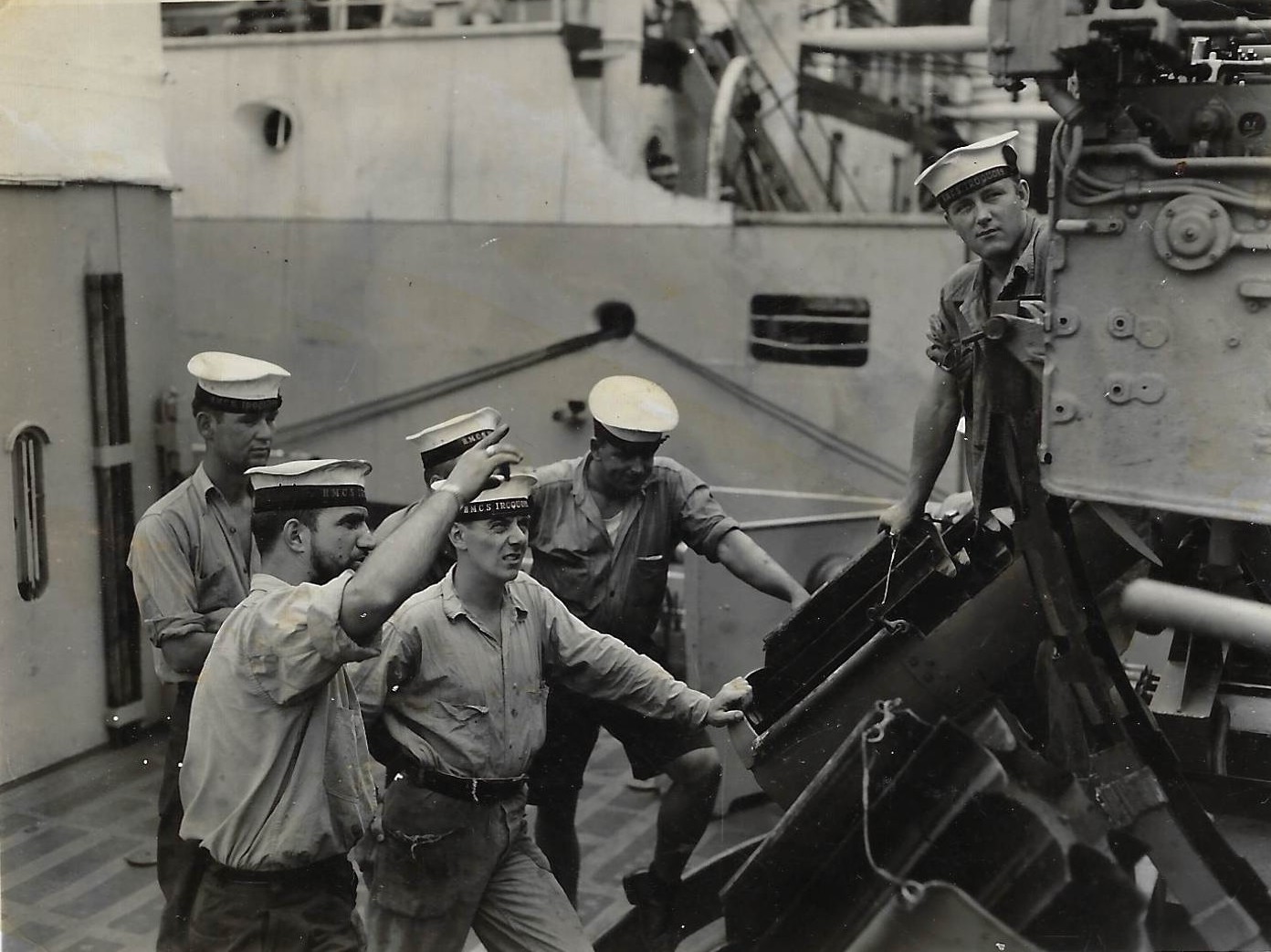 (MDP001) Malcolm Payne, CPO2, RCN, ret'd (MDP002) Record of Drafts from the Certificates of Service for Malcolm Payne (MDP003) HMCS MAGNIFICENT at Halifax (MDP004) Fleet Hockey Trophy being awarded to a team member from HMCS MAGNIFICENT. PO1 Malcolm Payne on the left (MDP005) Gunnery Training on HMCS IROQUOIS