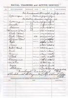 Ships served in: HMCS CATARAQUI - Enlisted 27 Jul 1943 * Commenced Active Service 29 Jul 1942 as an Ordinary Seaman, RCNVR HMCS CORNWALLIS - Drafted to CORNWALLIS 15 Sep 1943 HMCS STADACONA - Drafted to STADACONA 29 Jan 1944 HMCS MEON - Drafted to MEON 06 Feb 1944 * Rated Able Seaman, RCNVR 29 Jul 1944 HMCS NIOBE - Drafted to NIOBE 17 Apr 1945 HMCS PEREGRINE - Drafted to PEREGRINE 12 May 1945 HMCS NIOBE - Drafted to NIOBE 13 Nov 1945 HMCS WARRIOR - Drafted to WARRIOR 24 Jan 1946 * Commissioning crew HMCS STADACONA - Drafted to STADACONA 12 Jun 1945 * Demobilized 28 Jun 1946