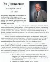 Walt was a proud Rotarian and founding member of the Rotary Club of Surrey, where he was described as a "Cherished, unwavering and relentless champion of all that is good" and held a perfect attendance record of over 43 years. He was a Navy war veteran and a recipient of the Queen Elizabeth Golden Jubilee Medal in 2002.