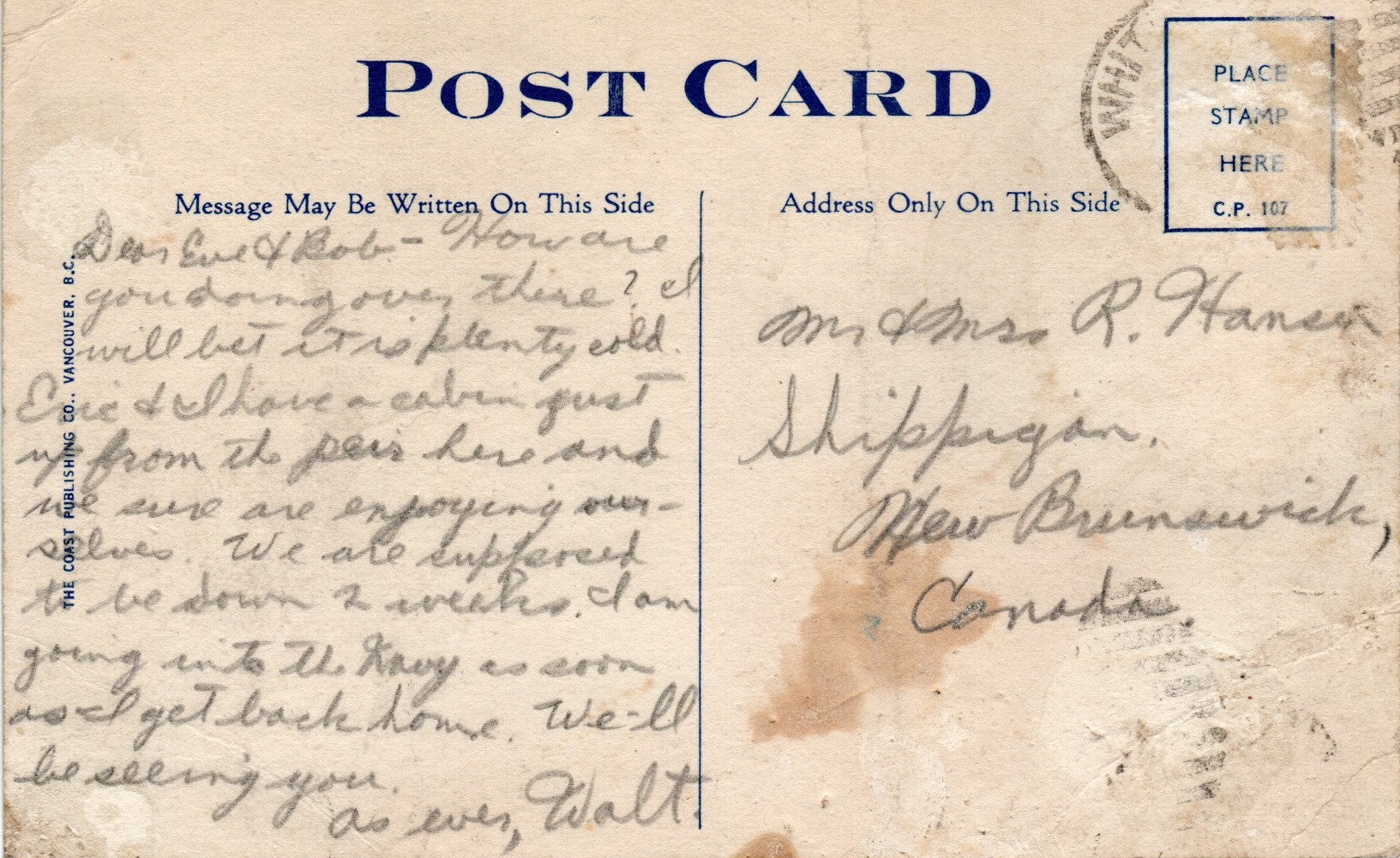 (CGWJ005) Postcard that Walt sent to his sister and brother-in-law telling them that he is joining the navy // back of postcard