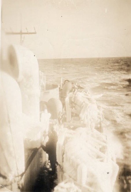(CGWJ006) HMCS TRILLIUM K172 in the North Atlantic covered in ice (CGWJ007) Sailors off HMCS TRILLIUM K172 in Bermuda during Work-ups- Aug 1944. Walt Johnson on the far ship. (CGWJ008) Les Lowe on HMCS TRILLIUM K172. Note that TRILLIUM's gunshield art is now on the face of the bridge. (CGWJ009) Walt Johnson on HMCS TRILLIUM K172