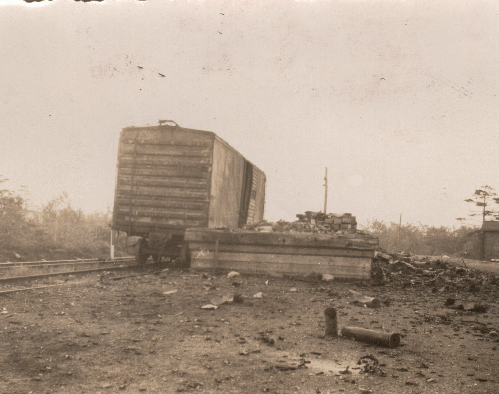 (...-...) Damage caused to buildings and bunkers as a result of the explosion at the Bedford Magazine 18-19 Jul 1945 (...) Rail loading platform at the Bedford Magazine with shell casings strewn about (...) Broken windows at the drill hall at HMCS STADACONA, Halifax caused by the Bedford Magazine explosion Courtesy of Beverley Desmarais