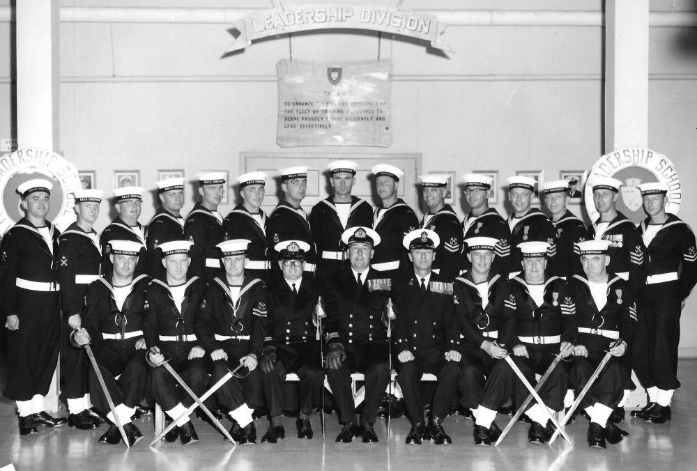 Petty Officers' Leadership Course Jun-Jul 1966 HMCS CORNWALLIS Click on the above photo to view a larger image Click here to view the photo with staff and students numbered for identification (1) Bosjeli (2) Unknown (3) Mackenzie (4) Jennings, Lt, (5) Smith, LCdr (7) Keysell, CPO (8) Unknown (9) Duncan (10) Buchanan (11) Robinson (12) Donnelly (12) Edmongs (13) Holden (14) Doak (15) Macintosh (16) Spargo (17) Coughlin (18) Fitzgerlad (19) Morsh (20) Unknown (21) Unknown (22) Blades (23) Haines (24) Buote From the collection of Dave Coughlin Courtesy of Dave Coughlin