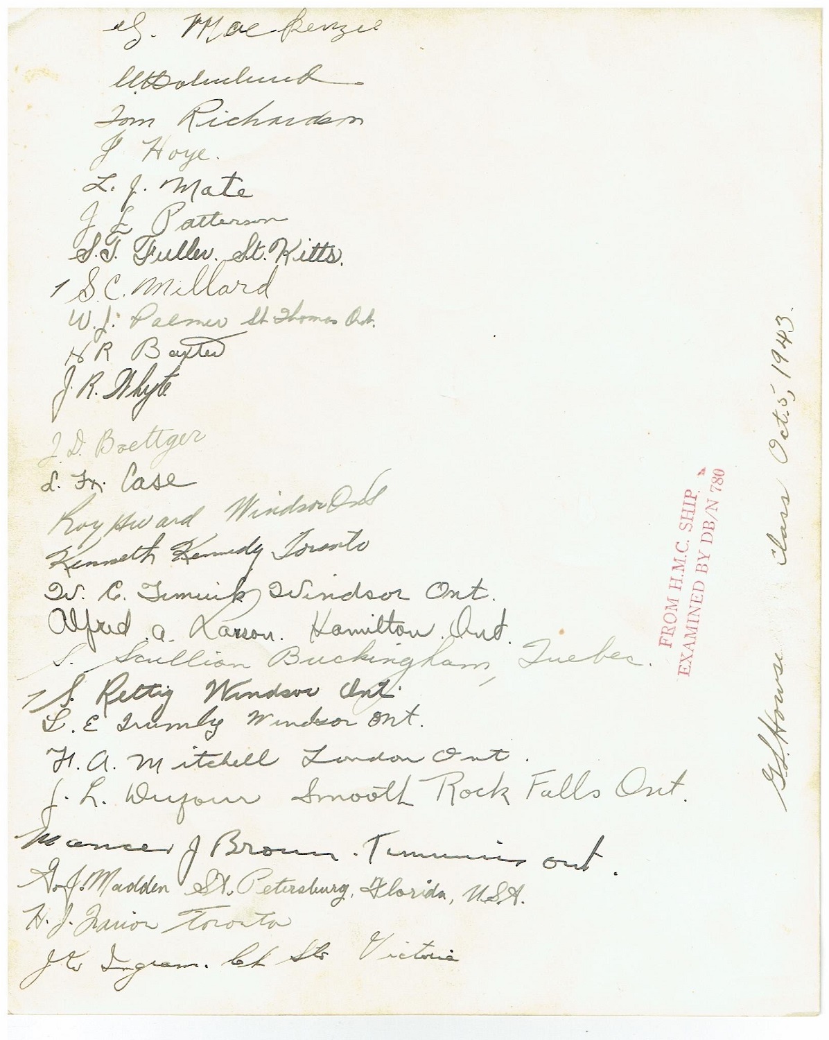 Stokers Course, 05 Oct 1943 (9) Howse, George Click here to view the names on the back of the photo From the collection of George Howse Courtesy of Dennis Carson