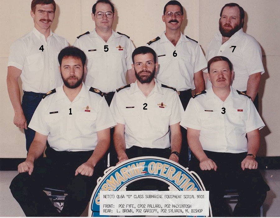 (1) Fyfe, PO2 (2) Pallard, CPO2 (3) Mackintosh, PO2 (4) Brown, L. (5) Gariepy, PO2 (6) Sylvain, PO2 (7) Bishop, M.