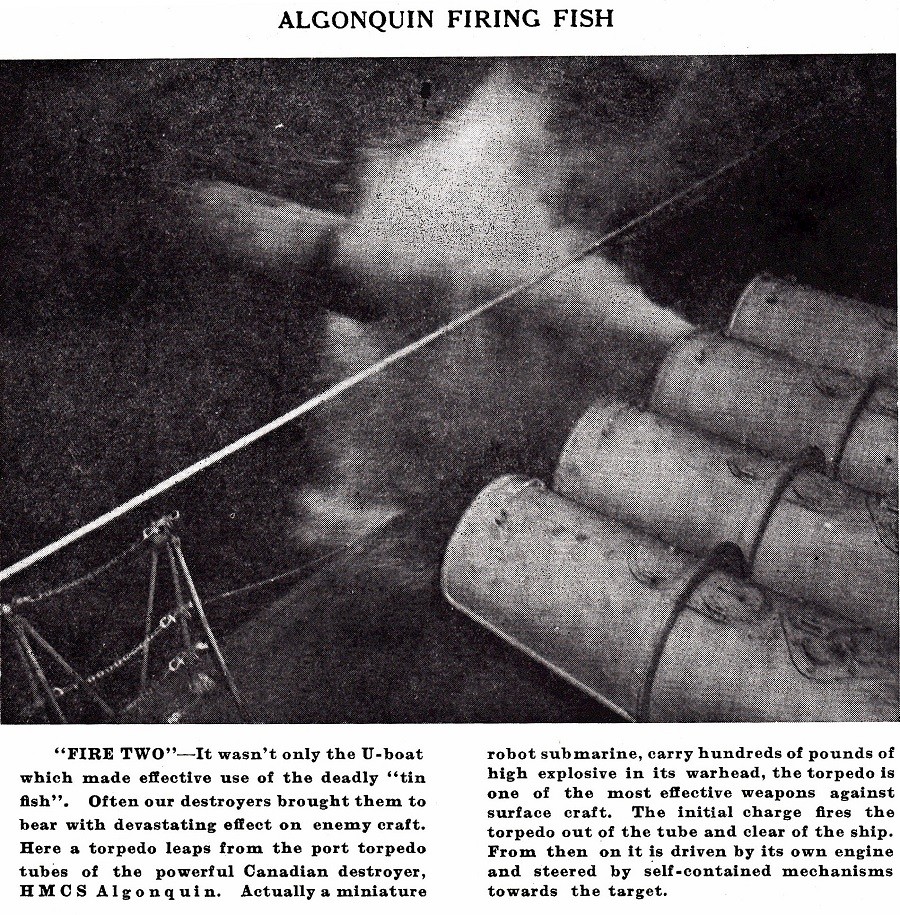 (AGQ001) HMCS ALGONQUIN R17 // From the collection of Wilfred Bowen, A/AB, RCNVR // Courtesy of Abbie Gourgon (AGQ002) HMCS ALGONQUIN R17 (AGQ003) Burial at sea of a seaman from HMCS ALGONQUIN who was killed during the invasion of France, 08 Jun 1944 // Source: Library and Archives of Canada MIKAN # 3256402 (AGQ004) Officers on the bridge of HMCS ALGONQUIN observing the results of their bombardment of German coastal fortifications in the Normandy beachhead, France, 7 Jun 1944. // Source: Lt Richard G. Arless / Canada. Dept. of National Defence / Library and Archives Canada / PA-140084 (AGQ005) ALGONQUIN Fires a Salvo // Crow's Nest newspaper dated Sep 1944