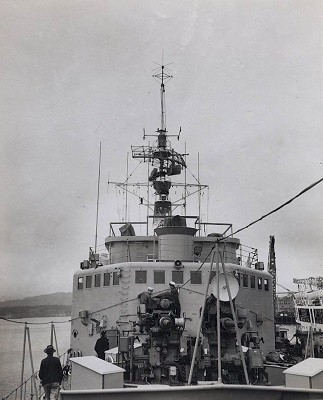She returned to Halifax in Feb 1945, for refit, leaving on 12 Aug 1945 via Malta to join the British Pacific Fleet, but was recalled on VJ-Day and left Alexandria for Esquimalt on 03 Nov 1945. There she was paid off into reserve on 06 Feb 1946, but was re-commissioned on 25 Feb 1953, after very extensive modernization, and sailed for the east coast that summer.