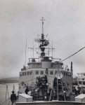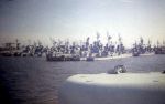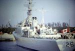(UNK018) Water slowly dropping in the lock (UNK019) The final lock and into the Pacific * Panama City, then northwards bound to Manzanillo and San Francisco and Esquimalt (UNK020) Squadron alongside at Panama City (UNK021) HMCS COLUMBIA 260 (left) and HMCS CRESCENT 226 (right) as seen from HMCS ALGONQUIN 224 (UNK022) HMCS CRESCENT 226 (left) and the fo'c's'le of HMCS ALGONQUIN 224 (right)