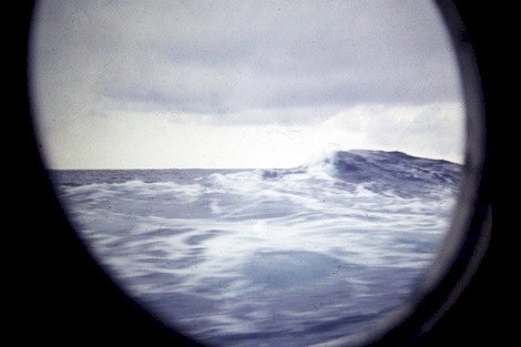 (UNK001) unknown crewmember of HMCS ALGONQUIN 224 who was the owner of the photos in this section * Transit from Halifax to Norfolk (UNK002) HMCS ALGONQUIN 224 taking a bit of a wave over the bow (UNK003) USS Dace exercising with the Canadian Squadron (UNK004) HMCS CRESCENT seen through the port hole (UNK005) Rough Seas