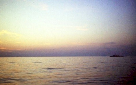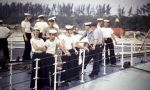 (UNK023) A quiet night and a calm sea (UNK024) Dawn, somewhere off Manzanillo, from HMCS ALGONQUIN, Apr 1967 - watching and hearing the ship come alive, and seeing the sun rise in the Pacific (UNK025) Preparing to launch the seaboat (UNK026) Three Cadillacs alongside in unknown port (UNK027) Sightseeing in an unknown port