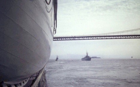 (UNK028) Sightseeing in unknown port (UNK029) Sightseeing in unknown port (UNK030) Sightseeing in San Francisco (UNK031) Sightseeing in San Francisco (UNK032) Departing San Francisco - HMCS COLUMBIA 260 following astern of HMCS ALGONQUIN 224