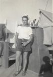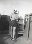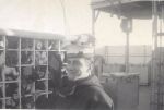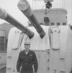 (BT033) Bob Theriault on the bridge of HMCS ANTIGONISH 301 (BT034) "Dick gave the CO the day off" - Dick in the CO's chair on the bridge of HMCS ANTIGONISH 301 (BT035) Unidentified Sig on HMCS ANTIGONISH 301 (BT036) Unidentified rating on 4-inch gun on HMCS ANTIGONISH K301 (BT037) Bob Theriault on 4-inch gun on HMCS ANTIGONISH K301 - 1951