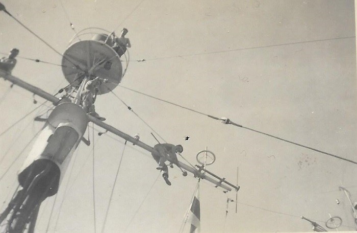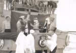 (BT038) The bunting tossers (Signalmen) on HMCS ANTIGONISH K301 (BT039) Jerry Sinclair (Suma Champ) painting the bridge on HMCS ANTIGONISH 301 (BT040) Bob Theriault on the bridge of HMCS ANTIGONISH 301 (BT041) Unidentified rating on the bridge of HMCS ANTIGONISH 301 (BT042) Bob Theriault by the flag locker on HMCS ANTIGONISH 301 - 1951