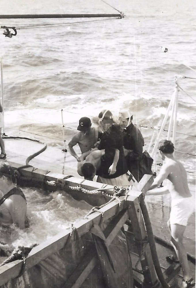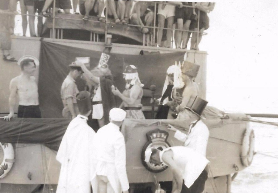 (BT043 - BT045) Crossing the Line ceremony on HMCS ANTIGONISH 301 (BT046) HMCS ANTIGONISH 301 sailors ashore in Panama (BT047) "Ready for a diving test". Bob Theriault on HMCS ANTIGONISH 301