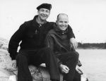 (DP14) Chaplain Peebles on the jetty by HMCS BONAVENTURE, Stockholm, Sweden, Spring 1965 (DP15) Chaplain Peebles (right) with PO Andy Rioux during a diving exercise, Stockholm, Sweden, Spring 1965 (DP16) Chaplain Peebles on board HMCS BONAVENTURE (DP17) Chaplain Peebles by a Tracker on HMCS BONAVENTURE c1964-65 From the collection of LCdr David Peebles, Chaplain (Cl III), RCN Courtesy of Kent Peebles