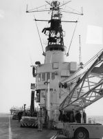 From the notes of Heinz Gohlish, Lt, RCN / C.A.F. ret'd - BONAVENTURE was removed from operational duties in Dec 1969 and her compliment was reduced to about 800 consisting of the Engineer Dept, Deck Dept, Supply Dept and a much reduced Operations and Air Department. With that, there was a brief further life as a supply ship during Maple Spring 1970 as PROVIDER was transferred to the West Coast and PROTECTEUR was delayed, and also as a heavy equipment transporter for two army exercises - to Jamaica (Nimrod Capers) and to Northern Norway (Arctic Express). Between January and April 1970, BONAVENTURE had significant sea time.
