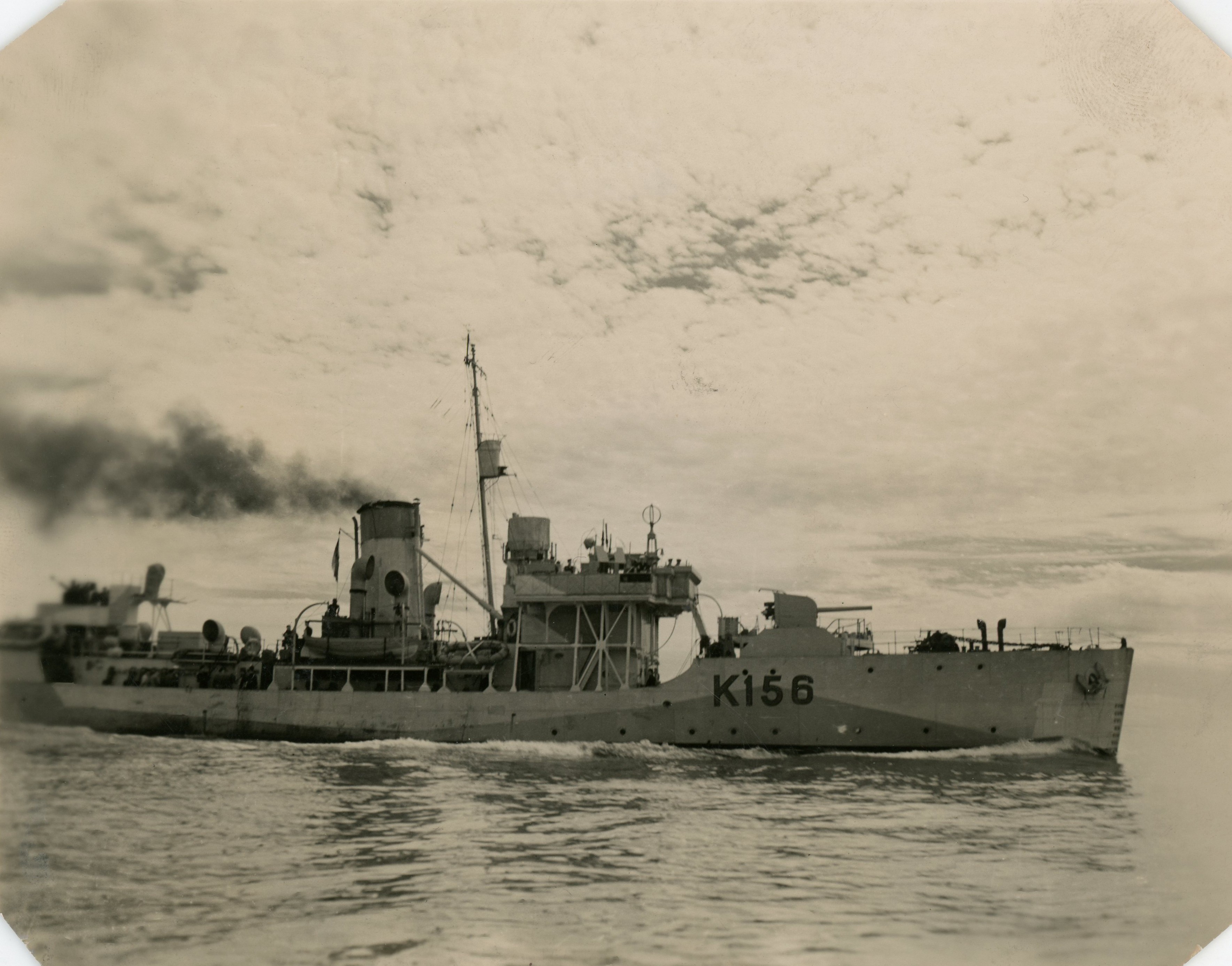 (CTM001) HMCS CHICOUTIMI K156 in 1942 // Source: Flickr photo collection of Ron Bell (CTM002) HMCS CHICOUTIMI K156 (CTM003) HMCS CHICOUTIMI K156 (CTM004) Two officers of HMCS CHICOUTIMI standing by the gunshield art of the ship's forward gun, Halifax, NS - June 1945 // Library and Archives of Canada MIKAN no. 3303861 (CTM005) HMCS CHICOUTIMI K156 // Photo taken from unknown ship - RCN photo