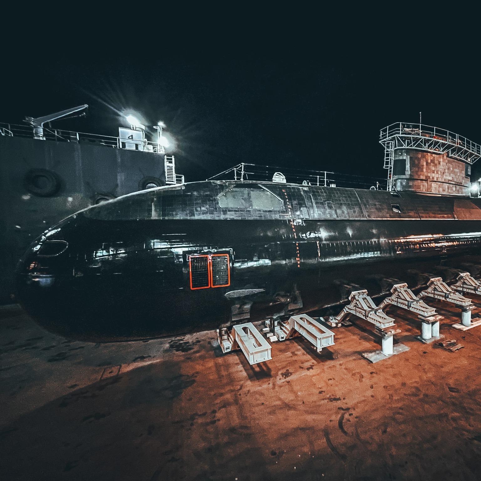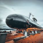 (CRN005 - CRN008) HMCS CORNER BROOK emerging from the hangar at Esquimalt Graving Dock in preparation for her return to sea - 2022 // Canadian Submarine Force facebook page