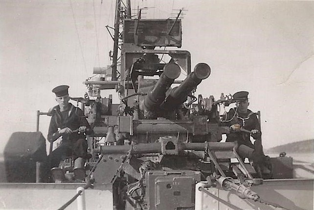 (CRS005) Cadets Robert Rice (left) and Jack Cummer (right) on the twin bofors on HMCS CRESCENT, 03 Sep 1946 // From the collection of Robert Rice // Courtesy of J.D. Ford (CRS006) Cadet Robert Rice leaning on the gun barrel on HMCS CRESCENT, 03 Sep 1946 // From the collection of Robert Rice // Courtesy of J.D. Ford (CRS007) HMCS UGANDA joins HMCS WARRIOR and HMCS CRESCENT of Acapulco Bay // Halifax Mail, Wed. 27 Nov 1946 // Courtesy of George Newbury (CRS008) ERAs on HMCS CRESCENT 1947 // Ken Copeland, Chris Pepper, Doug Tyre, Dennis Tompkins, Hank Evans, Lawrence (Peck) Houghton, Tom Blyth // Source: Chief and POs Association, Esquimalt newsletter // Courtesy of Steve Hlasny (CRS009) HMCS CRESCENT - 1948 // From the collection of Tom Smith, C2ET, RCN
