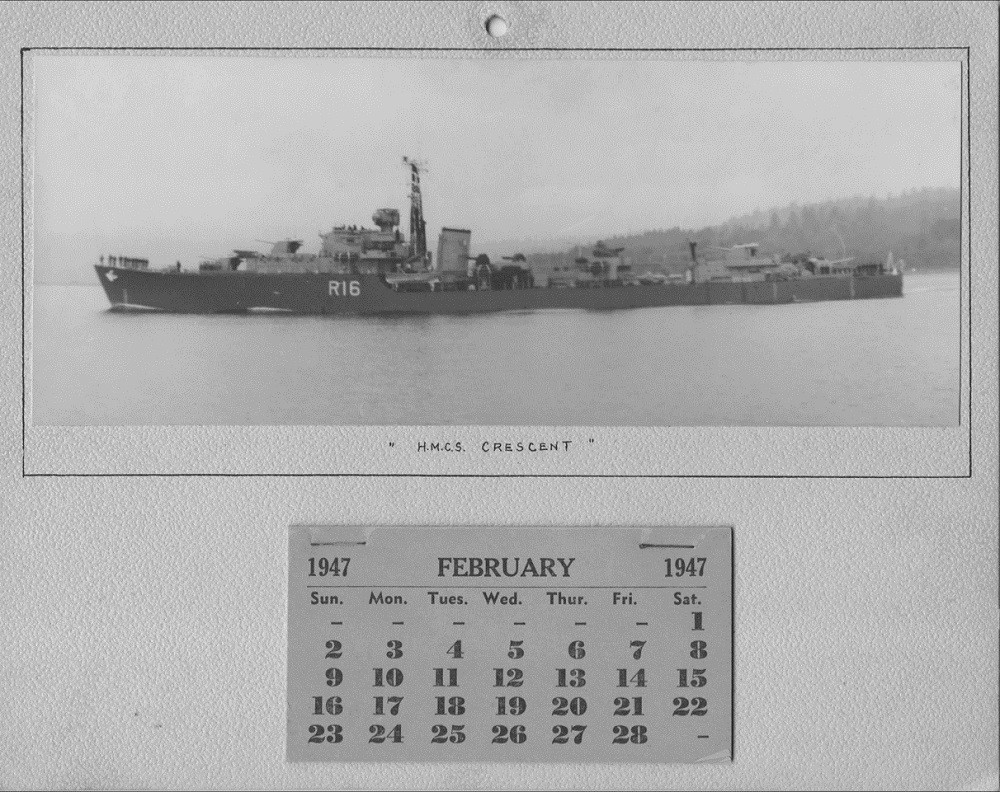 (CRS001) HMCS CRESCENT R16 // Courtesy of Daniel Miller (CRS002) HMCS CRESCENT R16 // From the collection of John Carpenter // Courtesy of Brian Carpenter (CRS003 - CRS004) HMCS CRESCENT R16 // From the collection of Harry Seright, Petty Officer 1st Class Radio Technician, RCN // Courtesy of Sam Seright